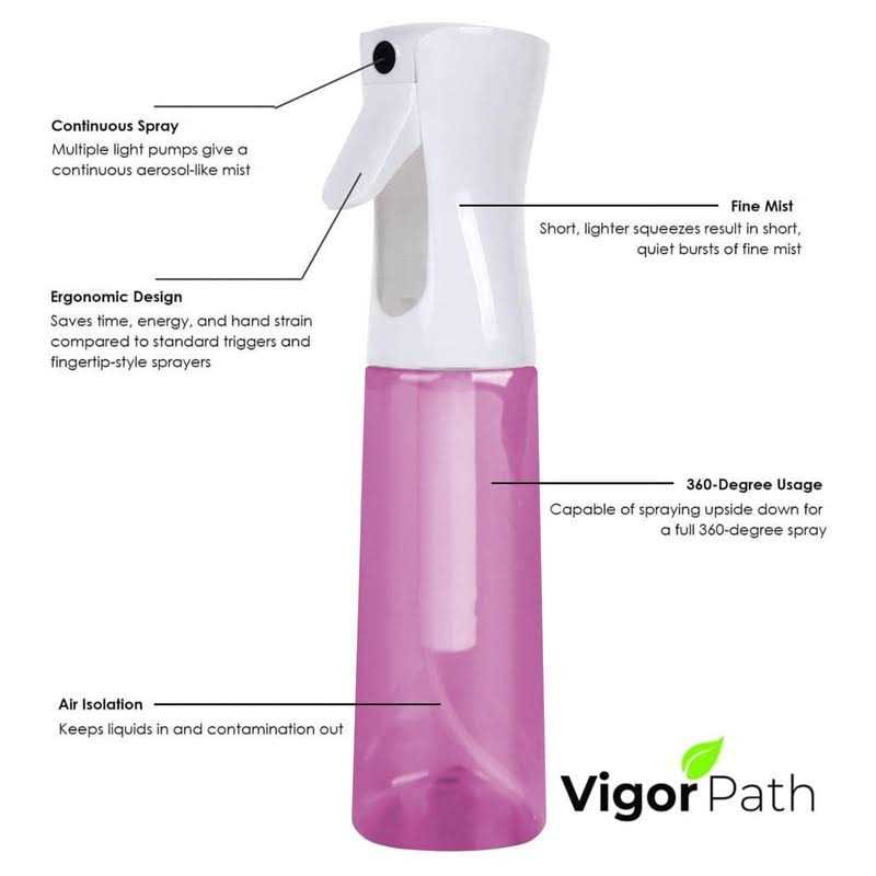 Vigor Path Continuous Water Mister Spray Bottle for Hair – Continuous Spray Nano Fine Mist Sprayer – Empty Spray Bottle – Reusable Beauty Spray Bottle