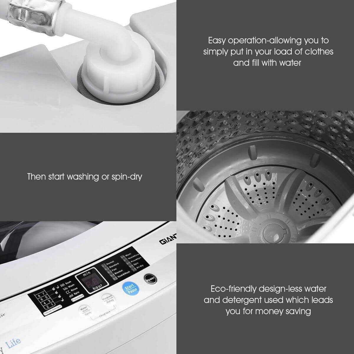 This portable compact washing machine which only needs a small space to store is a perfect solution for compact living. Equipped with a variety of convenience features, it includes a see-through lid, electronic controls with LED display, stainless steel inner tub and 2 water pipes. The max weight capacity of this washing machine is very suitable for you doing medium weight laundry. In addition, this machine features a built in drain pump and a drain pipe which allow you to easily drain out dirty water. With this laundry washing machine, you will find washing is an easy job.