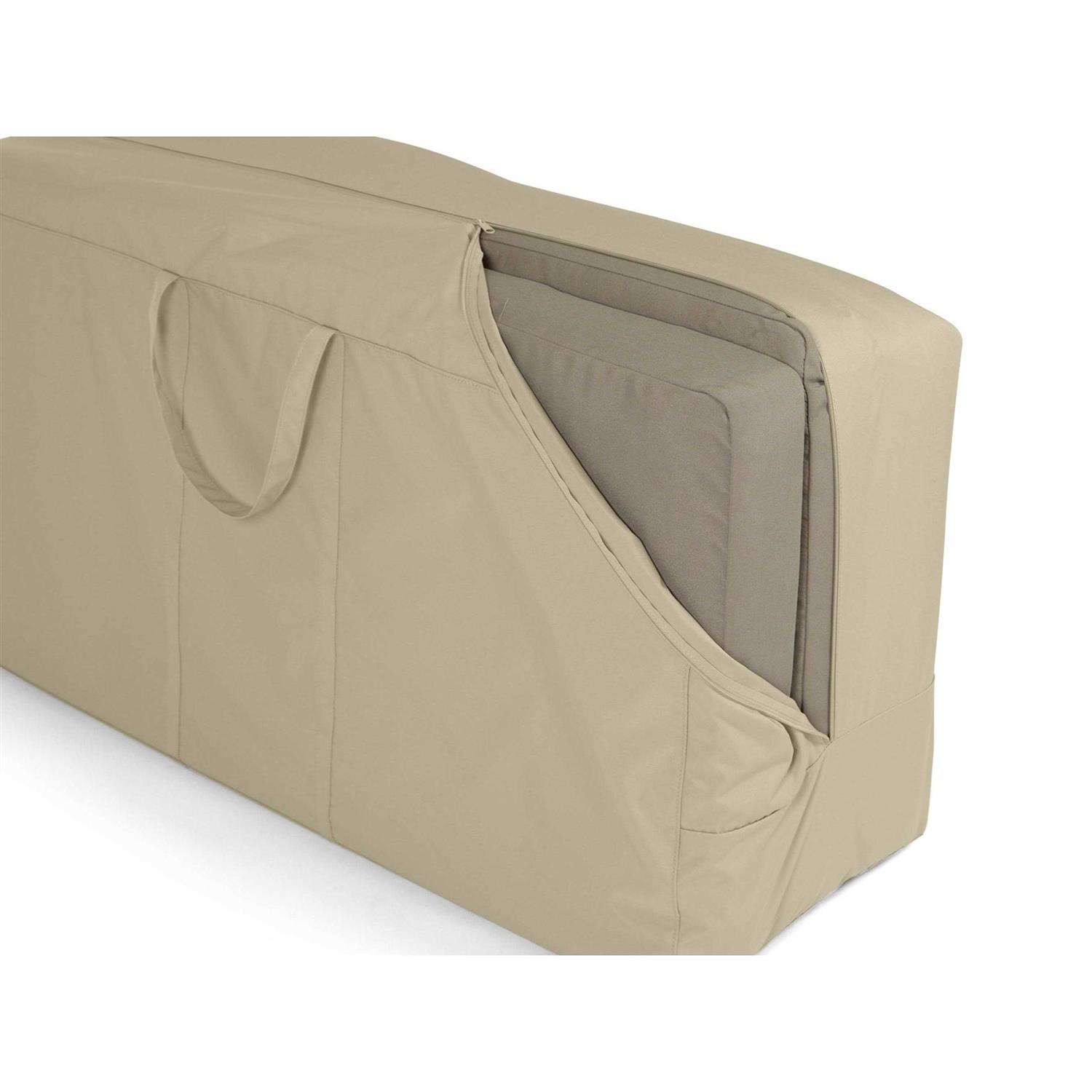 A nice day in the backyard can come to an end when you notice your patio cushions are wet. On the other hand, storing cushions can be a hassle due to their shape and size. Covermates Cushion Storage Bags provide a convenient storage option to protect and store all of your patio cushions. Forget the times of coming out to wet cushions and having to change your plans due to rainy weather. Our best-selling material, Covermates Elite covers are ideal for climates with low to moderate humidity and sunlight and moderate to high wind gusts, rainfall, and snowfall. Covermates Elite Cushion Storage Bags make storing and transporting your bulky cushions easier than ever with durable carrying handles. Built-in mesh vent promotes air circulation to prevent trapped moisture. At the same time, a water-resistant zipper keeps moisture out.