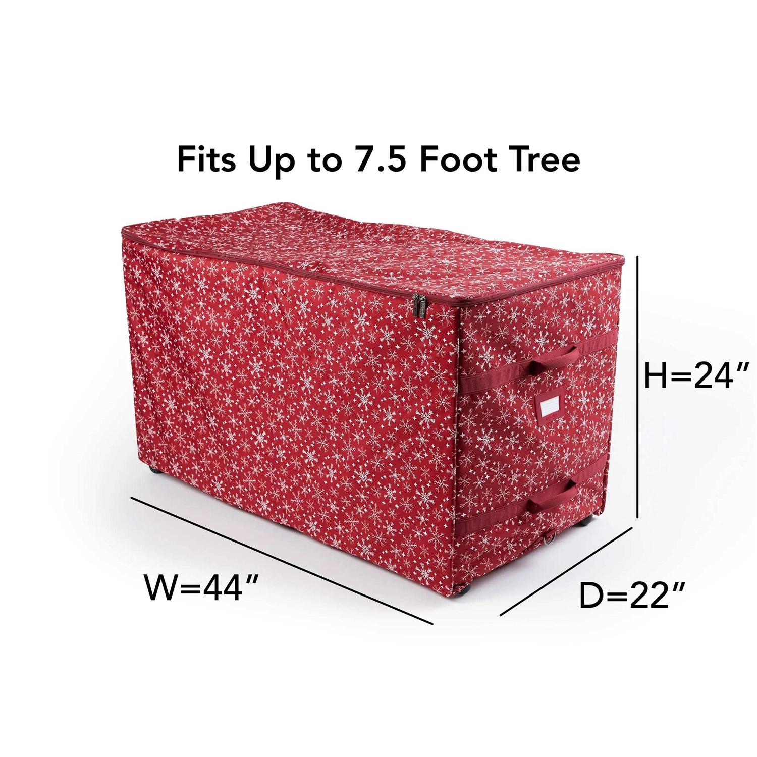 Rolling Structured Christmas Tree Bag – Fits Up to 7.5′ Tree, Heavy Duty Poly, 3-Year Warranty – Elite Plus, Red Snowflake – Covermates