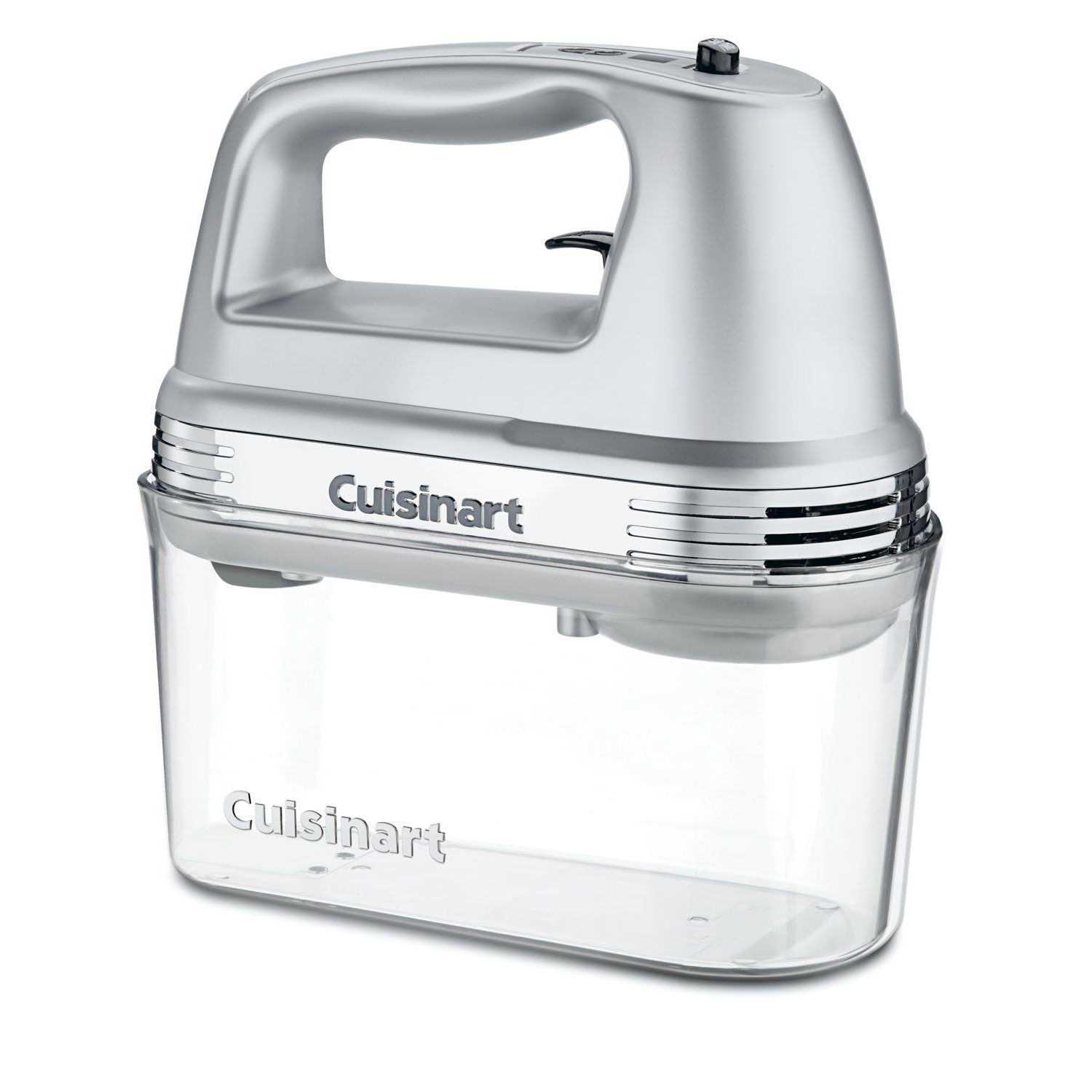 Our premium Cuisinart Power Advantage PLUS 9-Speed Hand Mixer is as easy to stow away as it is to use! Whiz through any task with the automatic feedback SmoothStart feature to eliminate splatters. Once youve beaten batters, whipped egg whites, and kneaded homemade bread dough, just clean it up and fit the extra-long beaters, chefs whisk, and dough hooks into the clear case, and snap the mixer on top. Perfect control, plenty of power, and compact storage. Thats a mixer anyone can love! All removable parts are dishwasher safe. 220-watt total power with automatic feedback. SmoothStart feature with 9-speed LED display. Sturdy snap-on case to store mixer and accessories. 2 extra-long self cleaning beaters with no center posts. Includes beaters, chef’s whisk, dough hooks, spatula and recipe book. 9.2 x 11.2 x 4.4. Imported