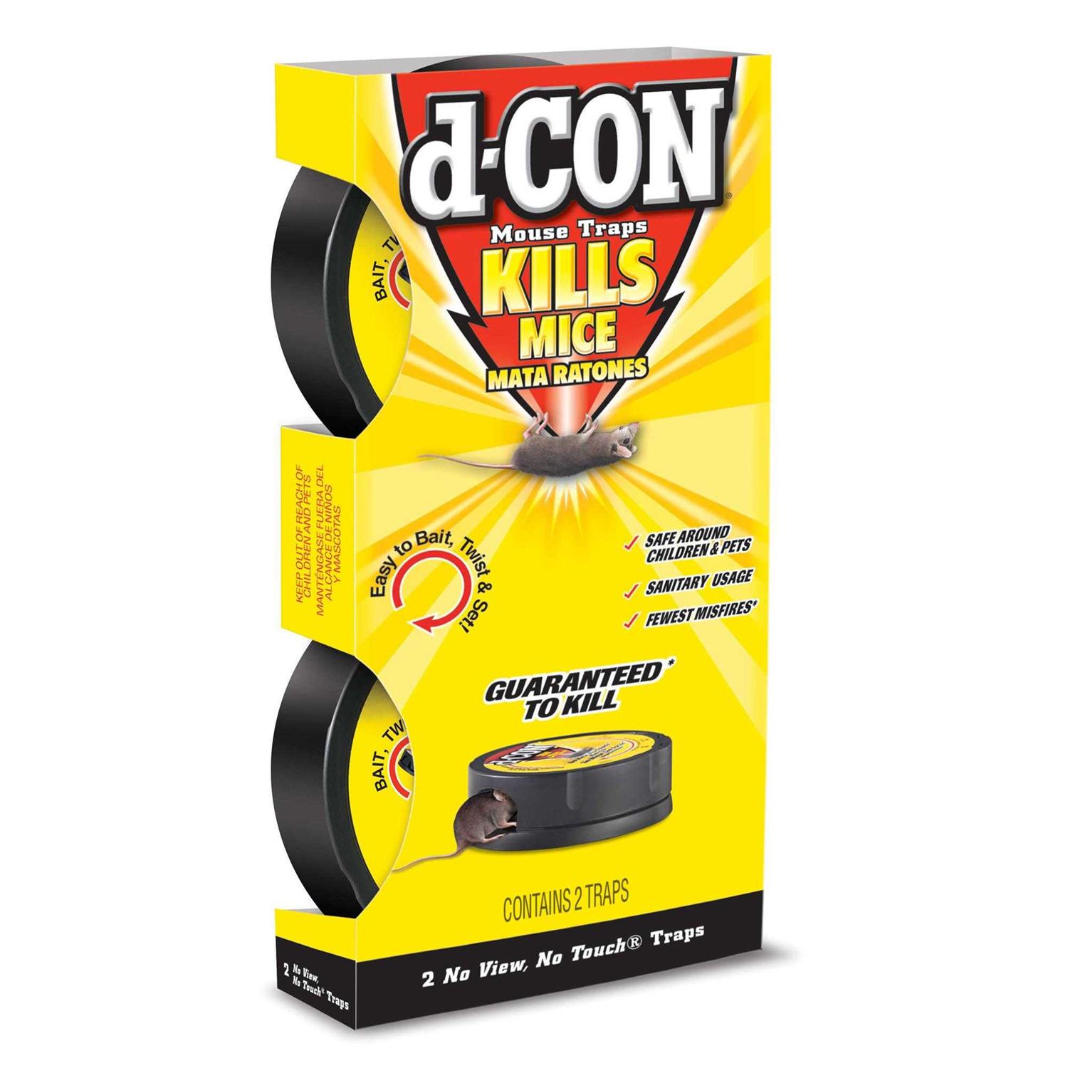 With the unique and easy to use d-CON No View, No Touch trap, you’ll never have to see or touch a dead mouse. Covered traps hide the dead rodents from sight and protect you while throwing them away. This discreet & effective covered trap completely and conceals the dead mouse. It is safer than traditional mouse traps- ideal for homes with pets or small children. Insert bait into bait compartment, twist to set, and place trap where you have seen mice or signs of mice. There is no messy cleanup required. Just watch for red indicator to know when a mouse has been caught, then dispose of the entire trap. If no mouse has been caught for 5 days, move trap to another location. Ideal for use in kitchens, bathrooms, bedrooms, pantries, and living rooms.