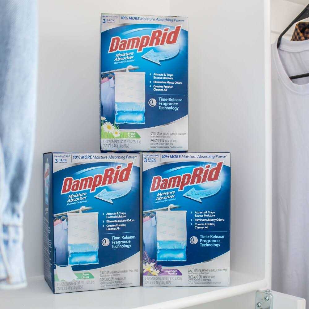 DampRid Hanging Bag Moisture Absorber attracts and traps excess moisture. The time-release fragrance technology releases a pleasant scent continuously over the life of the product. The hanging bag design is perfect for closets, laundry rooms, and storage areas where clothes often collect unpleasant odors. With 10% more moisture absorbing power*, DampRid lasts longer to absorb excess moisture, creating and maintaining the optimal humidity level wherever moisture is a problem. Each dehumidifying bag can last up to 60 days depending on the level of humidity and temperature. When the bag is finished, simply discard and replace. Not for use in moving vehicles. Keep out of reach of children. Read & follow all label directions. *Compared to 14-oz. bag.