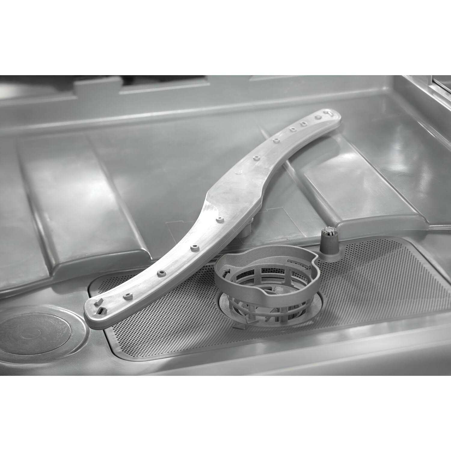- New and improved spray arm and filter gets dishes cleaner