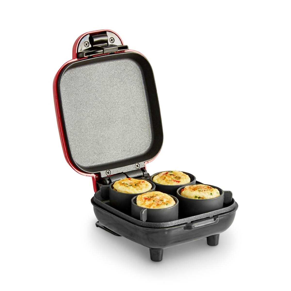 Perfect for quickly preparing protein-packed meals, the handy Dash Egg Bite Maker helps you easily make flavorful egg bites right in your kitchen. Appliance includes four silicone cups that precisely release eggs to create the perfect shape. Helps you make up to 4 fluffy egg bites in minutes. Includes: Dash Egg Bite Maker 4 silicone cups Recipe guide. Heating plate heats rapidly so there’s little wait time 420 watts. Ceramic/metal construction. Dishwasher safe parts/attachments. Measures 7″ L x 5″ W x 3″ H. Weighs 2 lb. Cord measures 31″ L. 1-year limited manufacturer’s warranty. Imported.