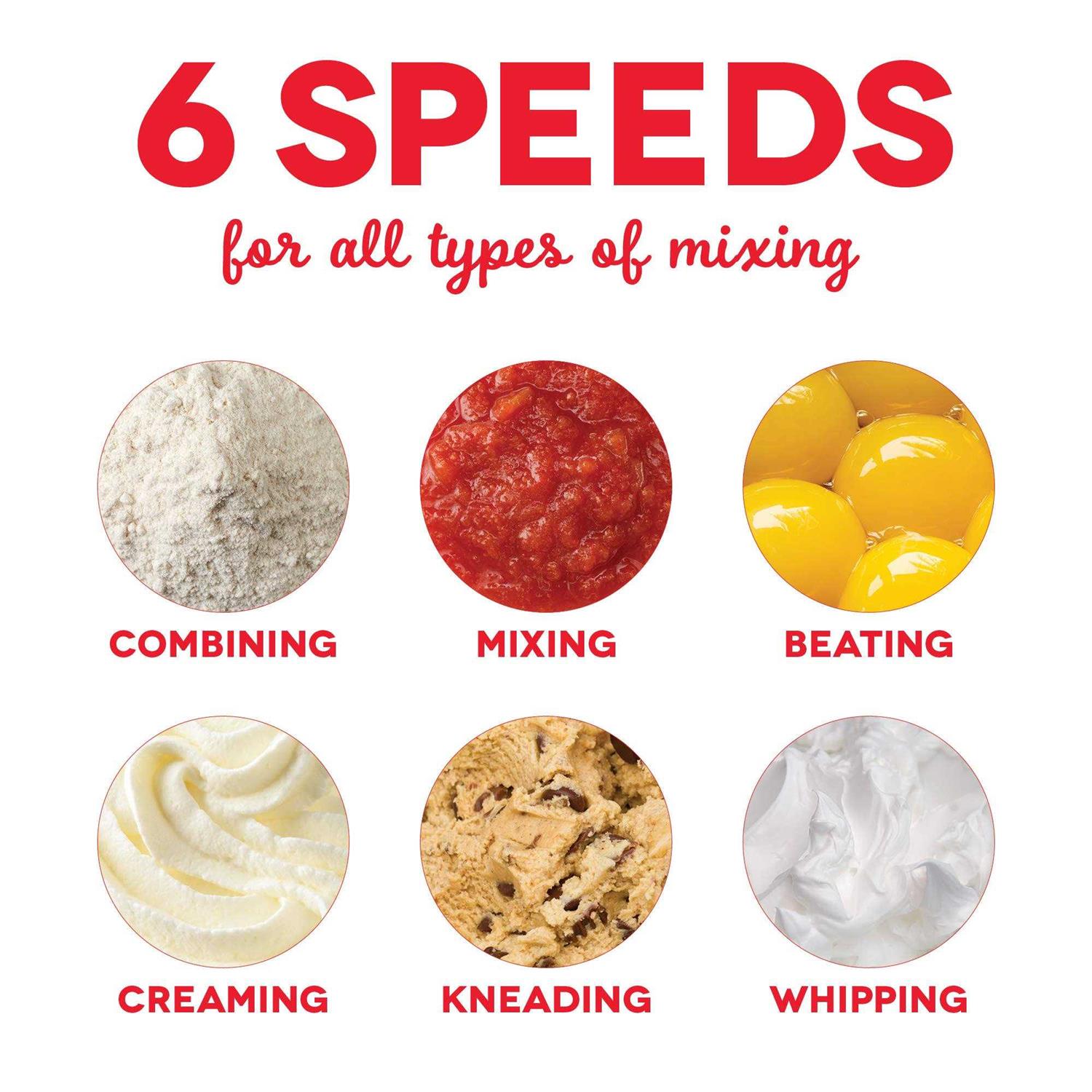 It is a powerhouse that can whip up everything from whole-wheat pancake batter, to oatmeal cookies, to fluffy egg whites with ease. Whether it is sweet or savory treats you crave, this entry-level mixer will do the job. Unprocess your food today with the recipe book that is included with purchase, and gain access to our database of thousands of recipes for free! A 2.5-Quart capacity Stainless Steel bowl allows you to whip up any treats, and 6 preset speeds allow you to get the perfect mix every time. Small, compact and retro design makes this a standout on your kitchen countertop. All non-electric parts are dishwasher safe.