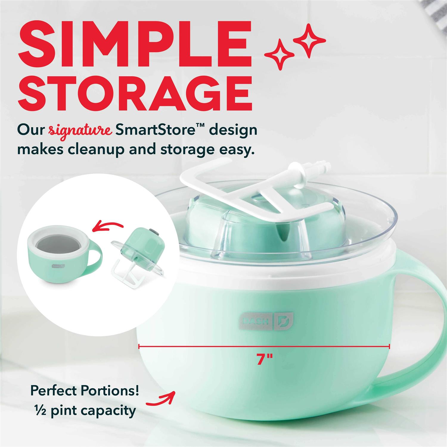Ice Cream Machines by DASH. Details:Make delicious single servings of ice cream, gelato, sorbet, and frozen yogurt with the Dash My Mug Ice Cream Maker! It is great for making recipes you can personalize by mixing in your favorite add-ins using the built-in Ingredient Chute. Just freeze the base, add ingredients, and press the on button for a delectable snack in just 20 minutes. Once your frozen treat is ready, you can eat it right from the mug and place the mug straight in the freezer to save leftovers for later! For an easy cleanup, all accessories detach and store neatly inside the mug. From counter to couch, it’s the perfect addition to a cozy night in.