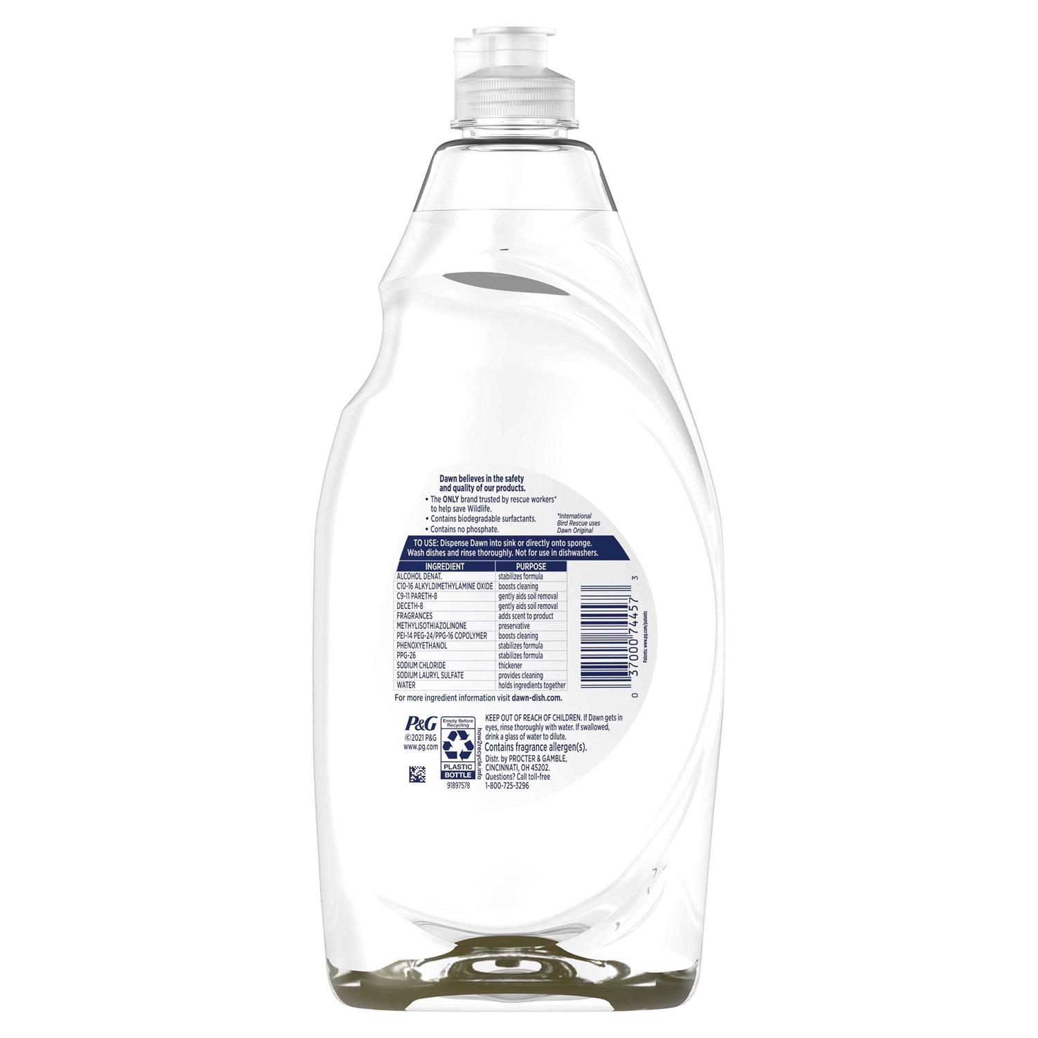 Description Dawn Pure Essentials dishwashing liquid dish soap is crafted with essential oils and biodegradable cleaning products while providing 3X MORE grease cleaning power. Dawn Pure Essentials dishwashing liquid dish soap has a subtle splash of citrus scent to keep your kitchen smelling fresh. Take on tough messes without all of the dyes and heavy perfumes with Dawn Pure Essentials Dishwashing Liquid Dish Soap. *Cleaning ingredients per drop vs. the leading bargain brand. Dawn Pure Essentials dishwashing liquid dish soaps new more powerful formula helps you get through more dishes with less dishwashing liquid. Our new more powerful formula helps you get through more dishes with less dishwashing liquid. Biodegradable Biodegradable A product that either makes an unqualified on-pack statement of utilizing biodegradable materials in the product, or makes a statement that the final product is 100% biodegradable. Multi-surface Multi-surface Can be used on many different surfaces.