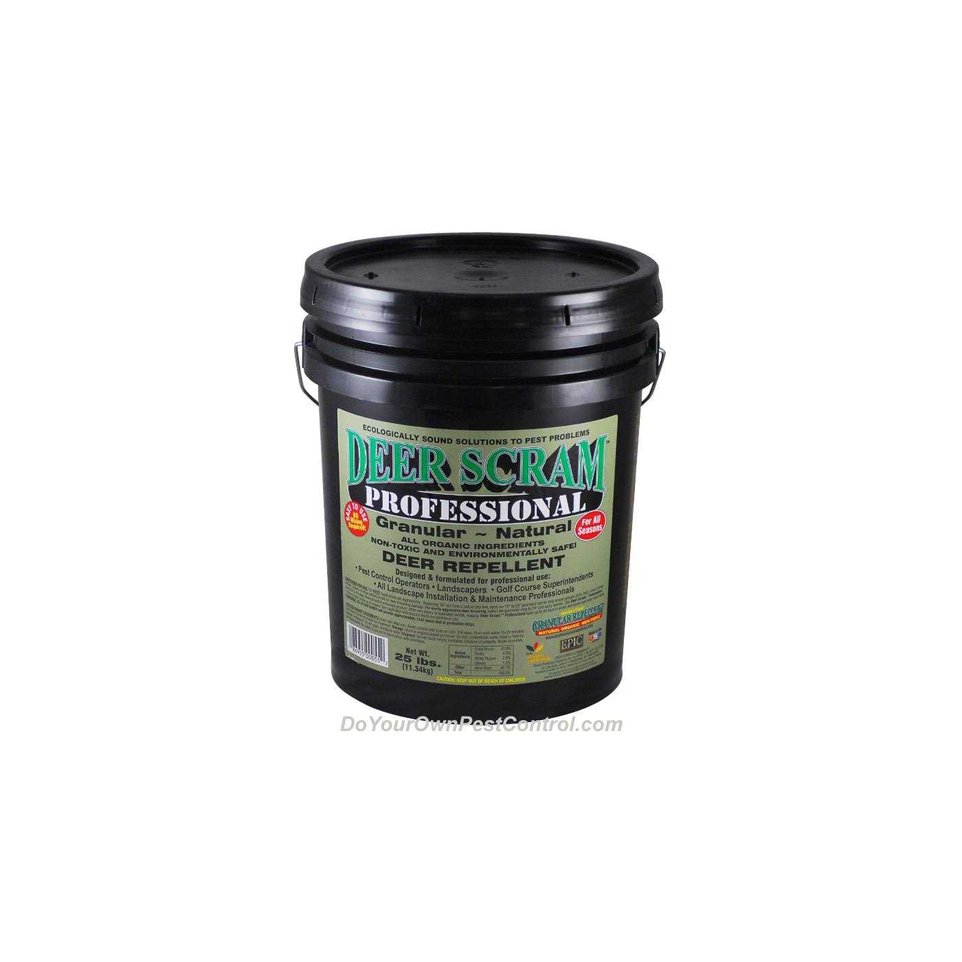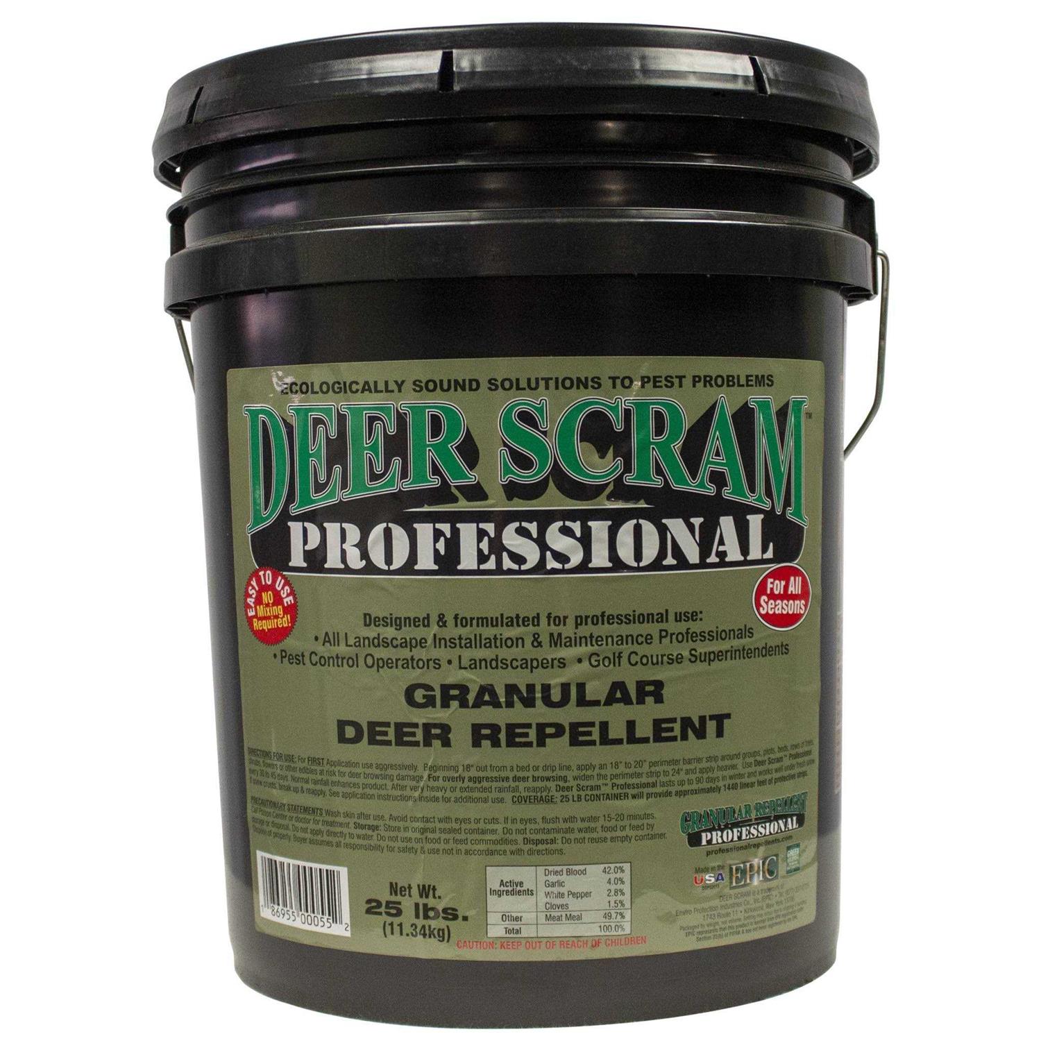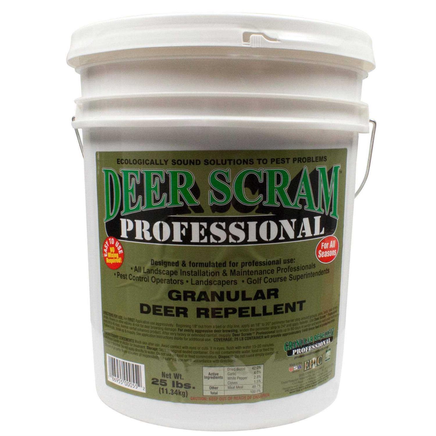 - Order your 25-pound bucket now! Enough Deer Scram to protect 32,400 square feet!