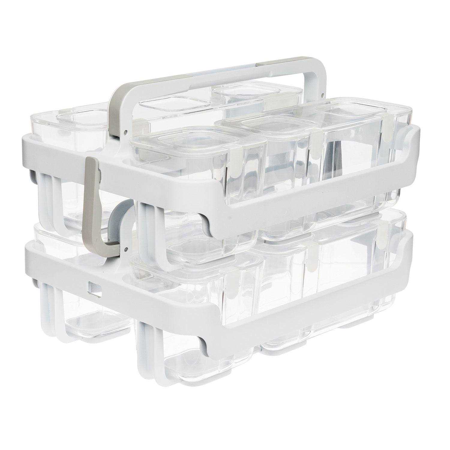 - Includes 2 caddies, each containing 1 frame and 3 canisters (1 small, 1 medium, 1 large)