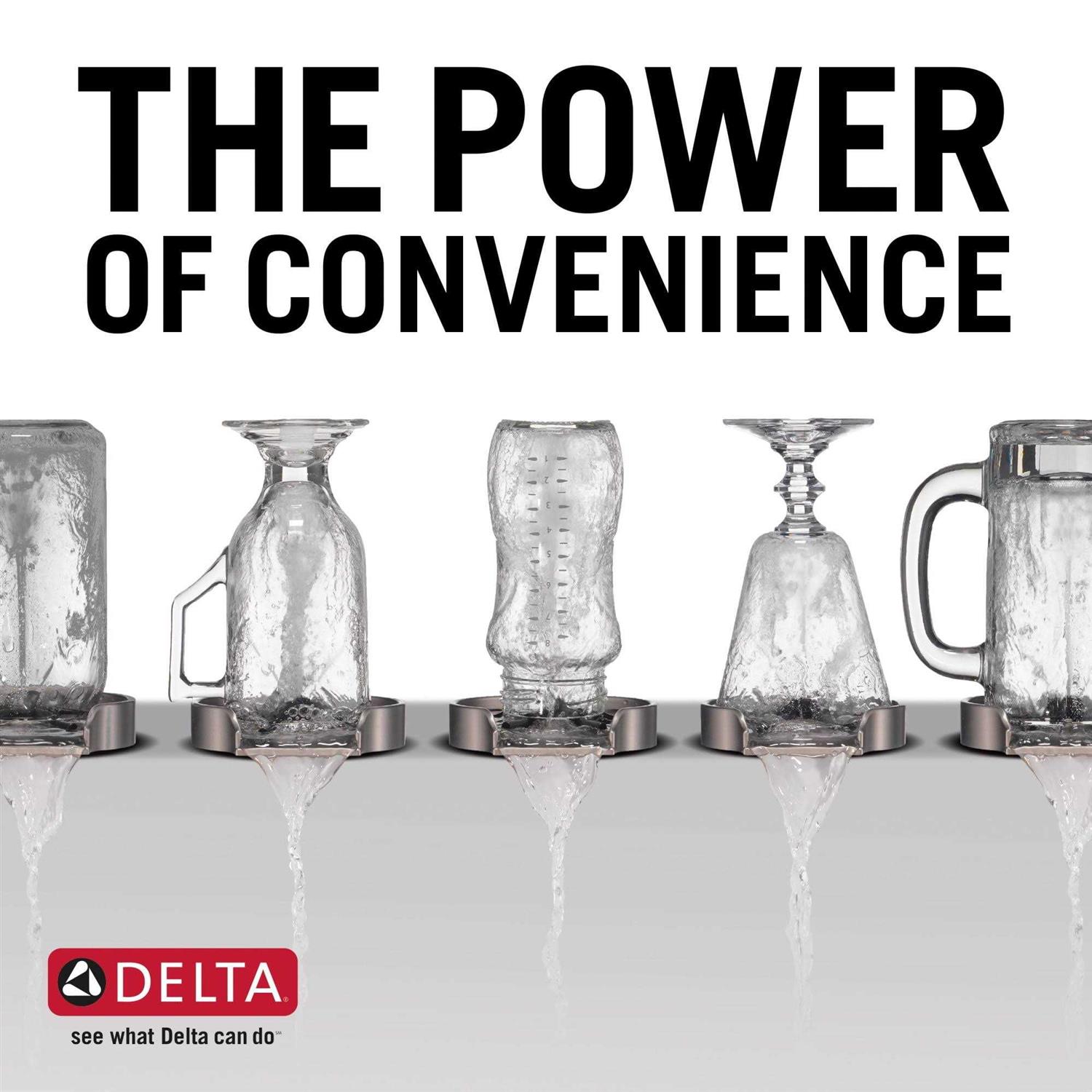 The Delta Glass Rinser thoroughly rinses residue in seconds, with high-pressure water jets that reach where you can’t. From baby bottles to wine glasses to travel cups, it conveniently rinses virtually any drinkware, so you can spend less time soaking and scrubbing. Its sleek, low-profile design coordinates with any faucet and it can be easily installed in an empty countertop hole, such as those used for soap dispensers and sink sprayers. Introduce the power of convenience to your kitchen with the Delta Glass Rinser. Who is Delta Founded in 1954, the Delta Faucet Company is focused on more than crafting great products that use water to transform the way you feel every day. Delta is centered on seamlessly integrating technology with stylish designs to make your busy life a little easier. Features Simple DIY replacement for a sink sprayer, soap dispenser or sink hole cover Can rinse most standard drinkware including wine glasses, baby bottles, and travel cups Minimum drinkware opening size is 1 in. in diameter and maximum drinkware opening size is 3.6 in. in diameter Includes matching finish cover accessory to help prevent accidental water spray Easy installation with include 42 in. supply line and adapter tee for connecting to water supply Water Conservation Requirements Water efficiency standards for plumbing products such as faucets, toilets, and showerheads vary state to state. This product meets water efficiency standards and is eligible for purchase in all contiguous U.S. states.