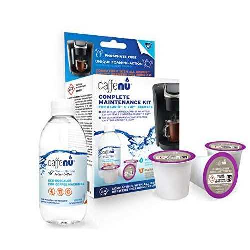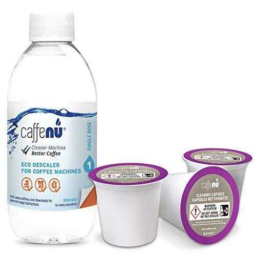 Caffenu Descaling Solution and Cleaning Kit for Keurig 1.0, 2.0 K Cup Coffee Machines. 3 Month Supply. 4 Keurig Cleaning Pods & Descaler for Keurig