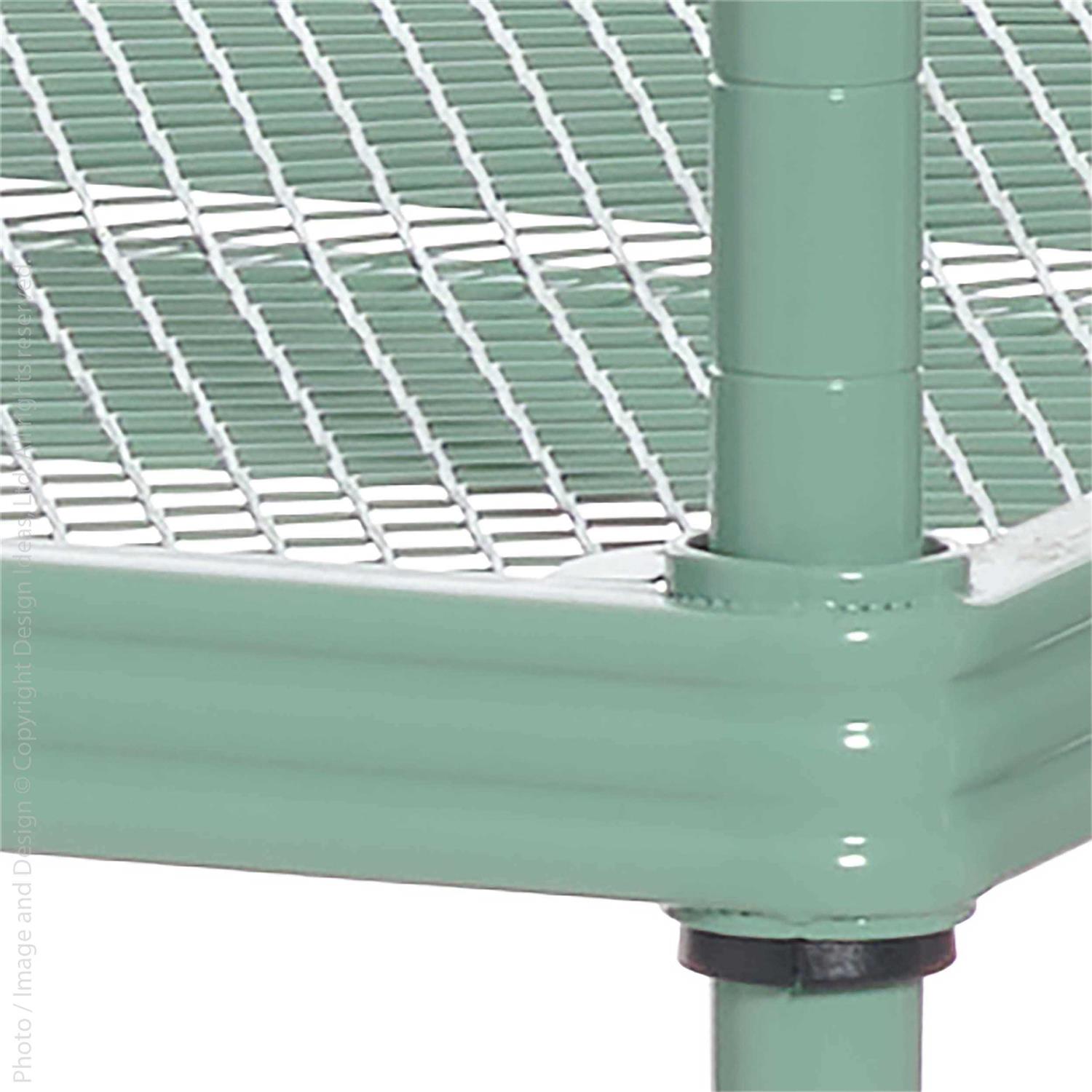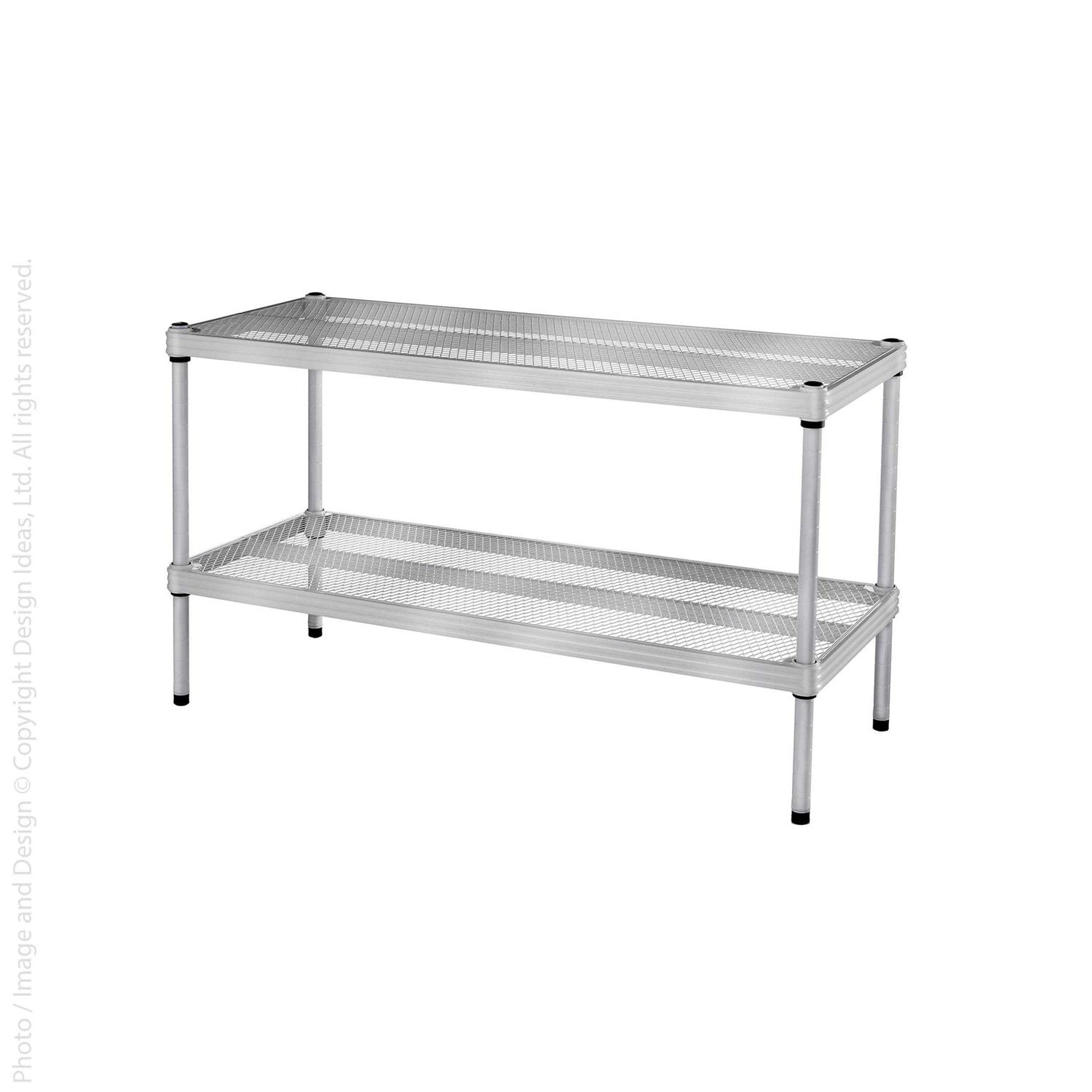 Traditional wire shelves can cause a headache as items can fall through the wide gaps on the shelves. Our brilliantly engineered mesh shelving units use a larger gauge of expanded metal mesh for style, strength and functionality. Each shelf has a weight limit of 440 pounds to safely hold everything from small knick knacks to large, heavy bins. Each MeshWorks stacking shelf includes 2 adjustable shelves and hardware for stacking multiple units as high as you need.