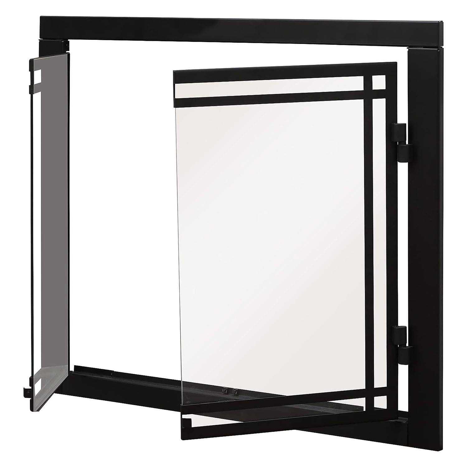 - Doors swing open, offering an enclosed finishing touch to the fireplace