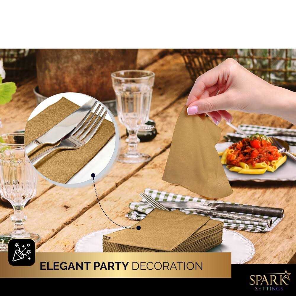 Disposable napkins are essential for accommodating guests’ high-end comfort and luxury. Cocktail napkins paper are disposable, Guests will dispose of these napkins right after use, which is a great alternative to wet, dirty towels. Color: gold.