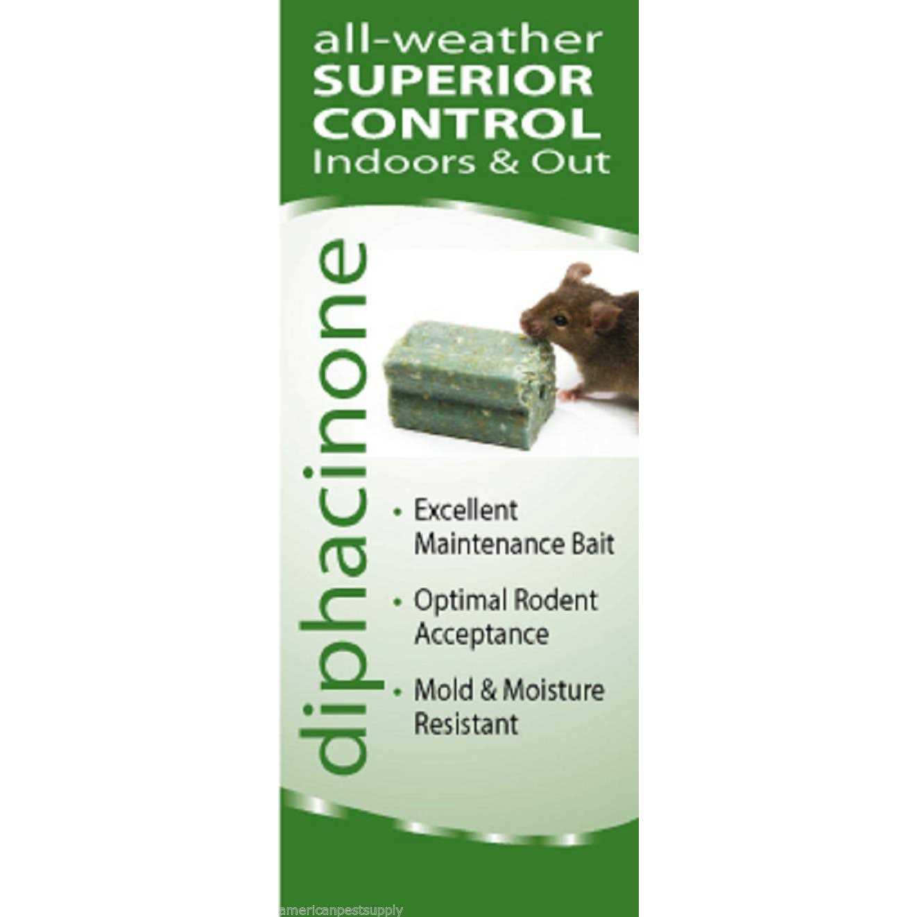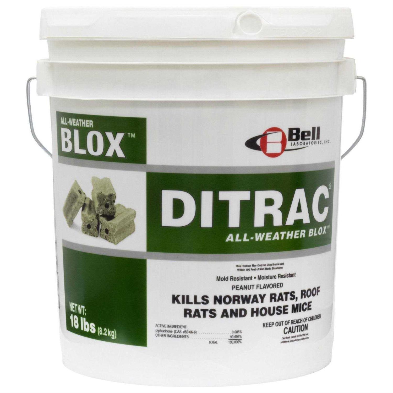 Ditrac All-Weather Blox is made with the active ingredient Diphacinone .005%. Since this is an all-weather blox, it means this can be used in any weather condition. This is considered a maintenance bait which means when using this bait, repeat feedings are required to eliminate the rodents. This is targeted to all rats and mice, especially Norway rats, roof rats and house mice.