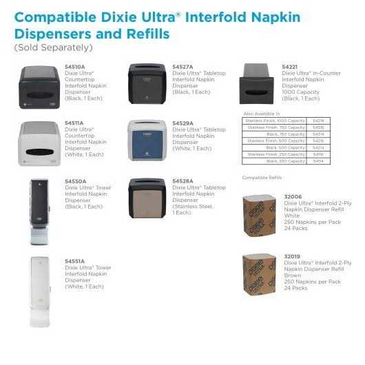 - COMPATIBLE with Dixie Ultra Interfold Countertop, Tabletop, Tower and In-Counter Napkin Dispensers