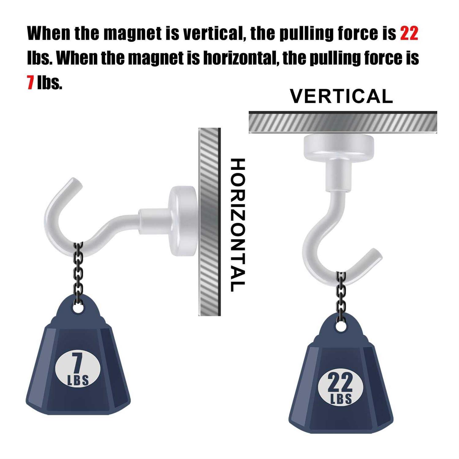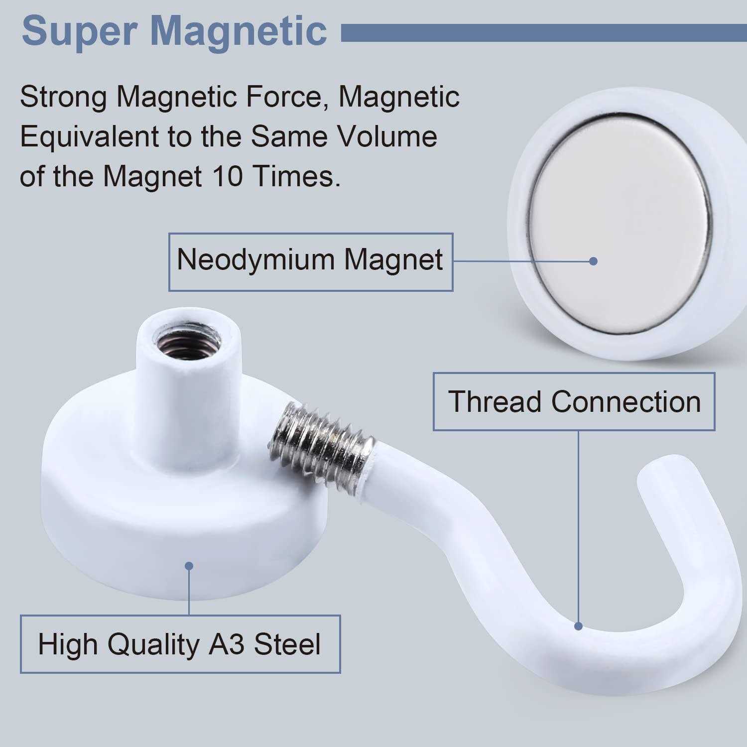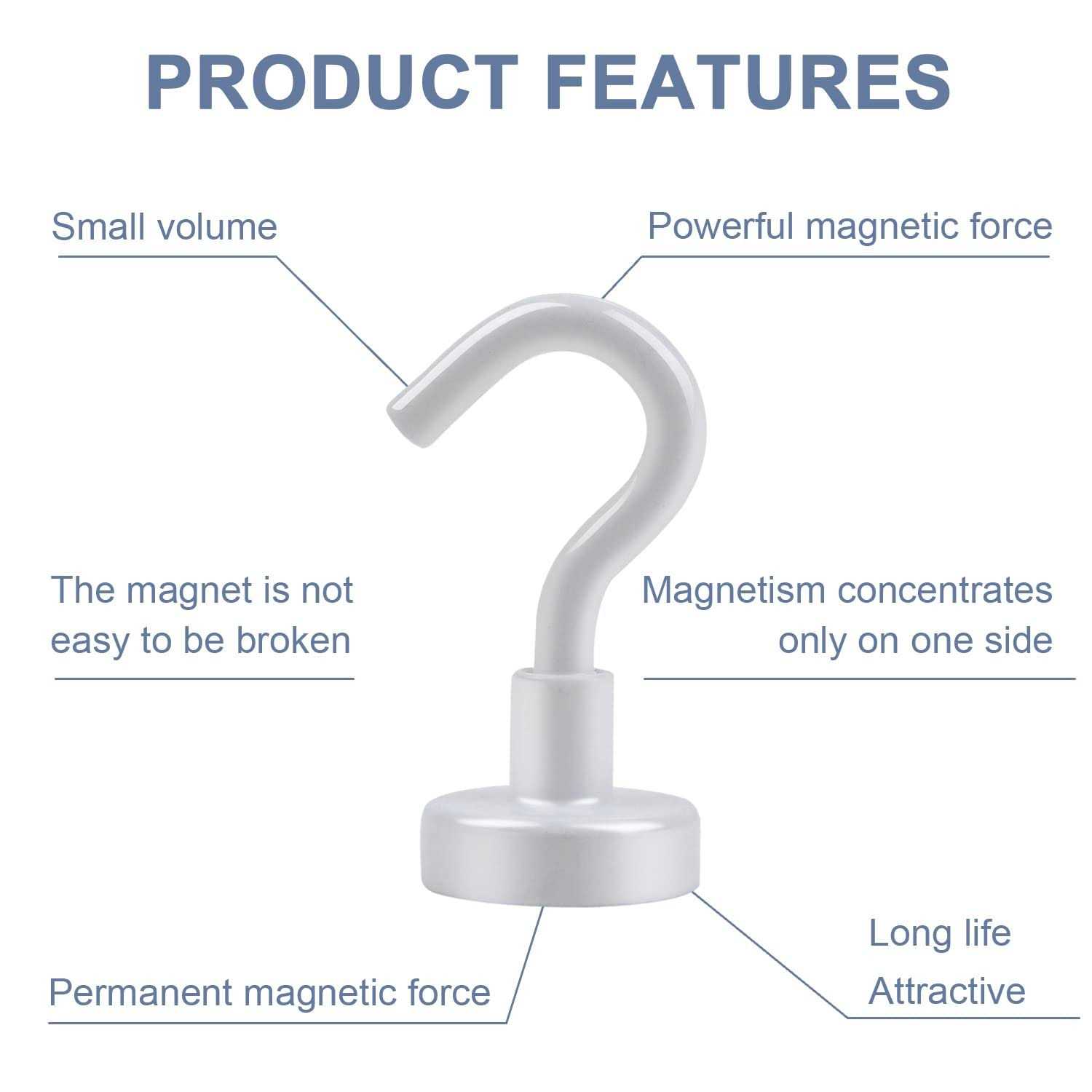 【High Quality】The strong magnetic hook is made of neodymium magnet and high quality A3 steel, the hook is strong and reliable. And the size is very portable 【Super Durablel】The heavy duty magnetic hook is coated with three layers: Ni-Cu-Ni, so the magnetic hook is shiny and anti-rust, provides protection for the magnet and helps the hook to chip or crack. Magnetism is always strong 【Wide Application】After accurate simulation and calculation, this hook has a wide range of applications, magnetic hooks for locker , classrooms, grill, refrigerators, doors,cruise cabinsand any place with steel metal 【Easy to Assemble】The metal magnetic hook can be used without punching, very simple and convenient NOTE】25lbs magnetic hooks tension is based on the direction of tension perpendicular to the contact surface – if used horizontally, reduce by 2/3
