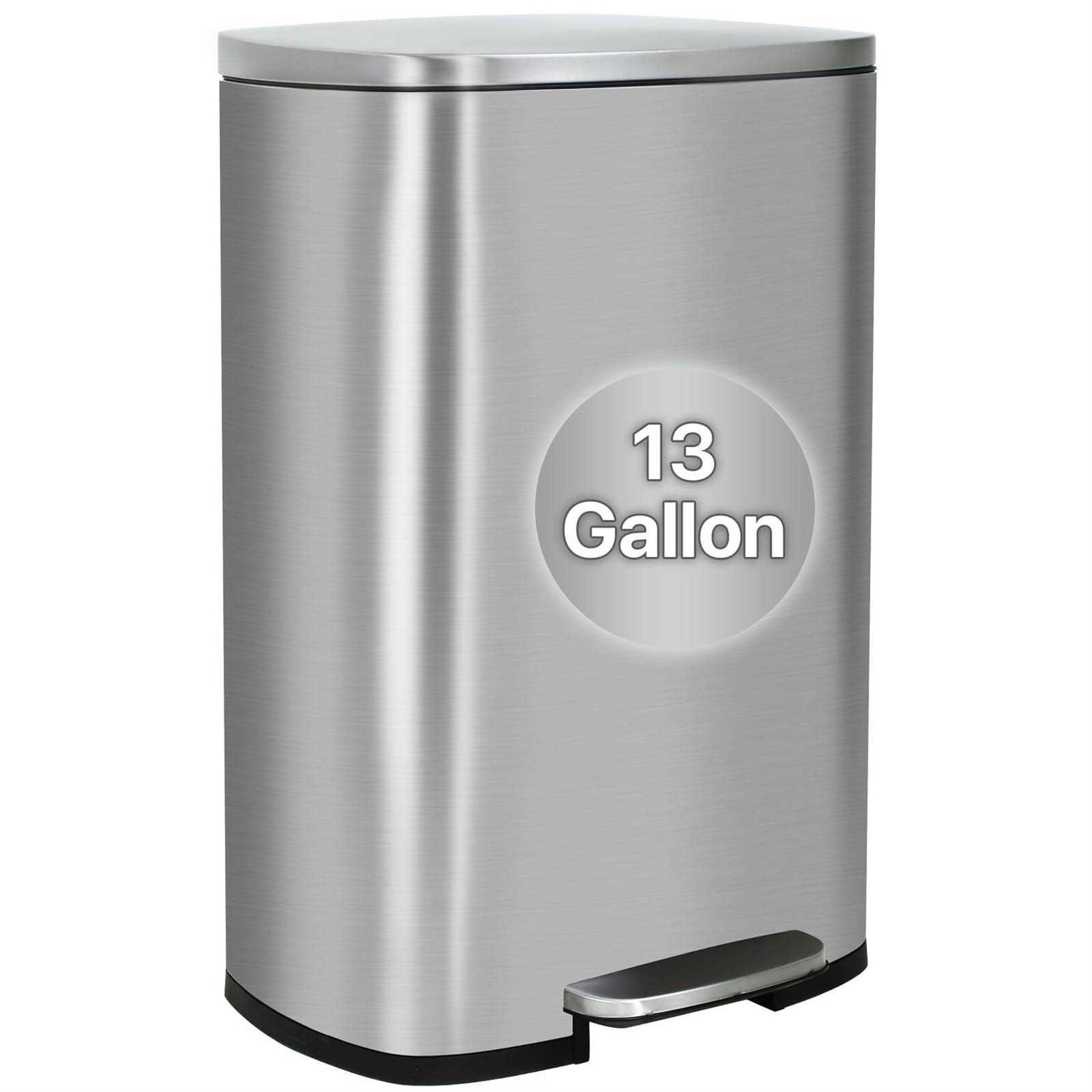 Dkeli Kitchen Trash Can 13 Gallon with Soft Slow Lid Big Step Trash Can with Removable Plastic Inner Bucket