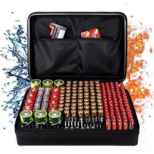 DocSafe Fireproof Battery Organizer Storage Box Fireproof Waterproof Explosionproof Safe Carrying Case Bag Hard Holder Holds 200+ Batteries AA AAA C D