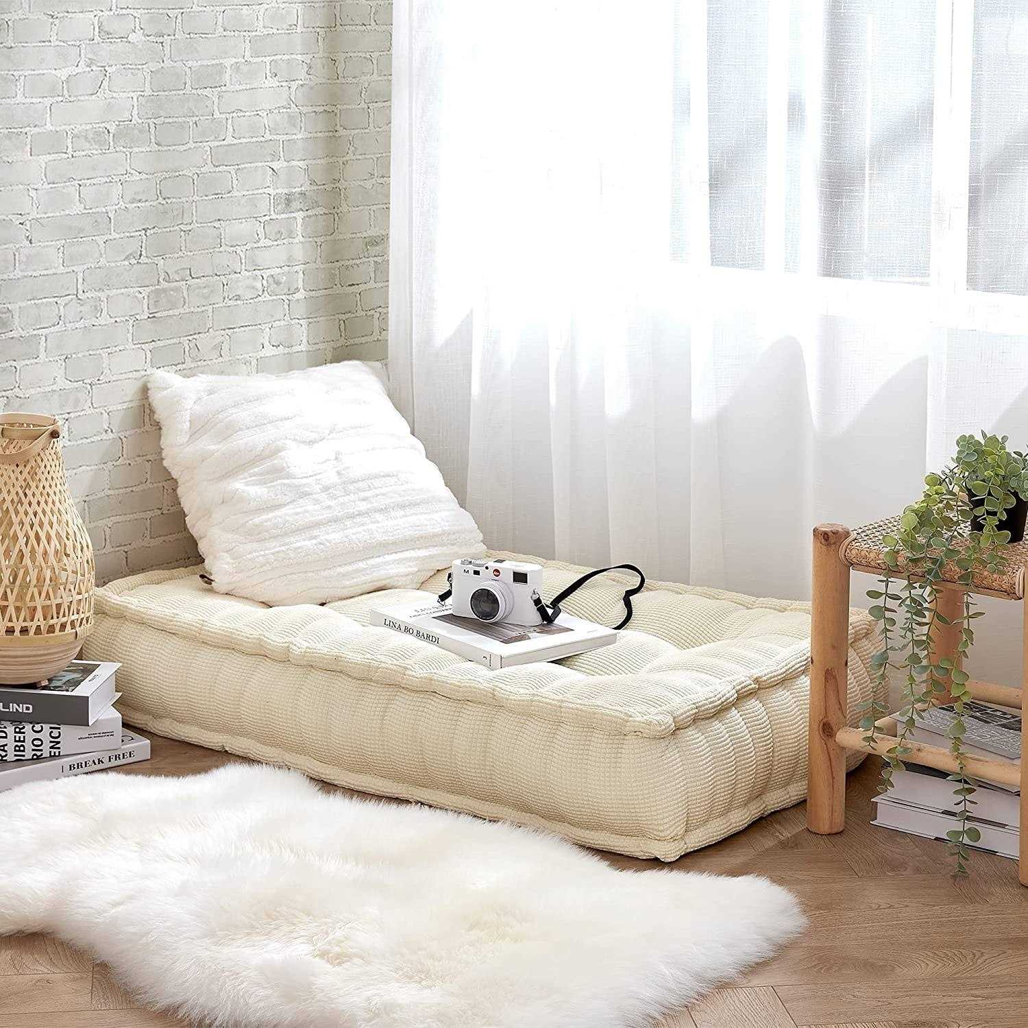 DormCo Rainha – Ultra Thick Tufted Floor Pillow – Pure White