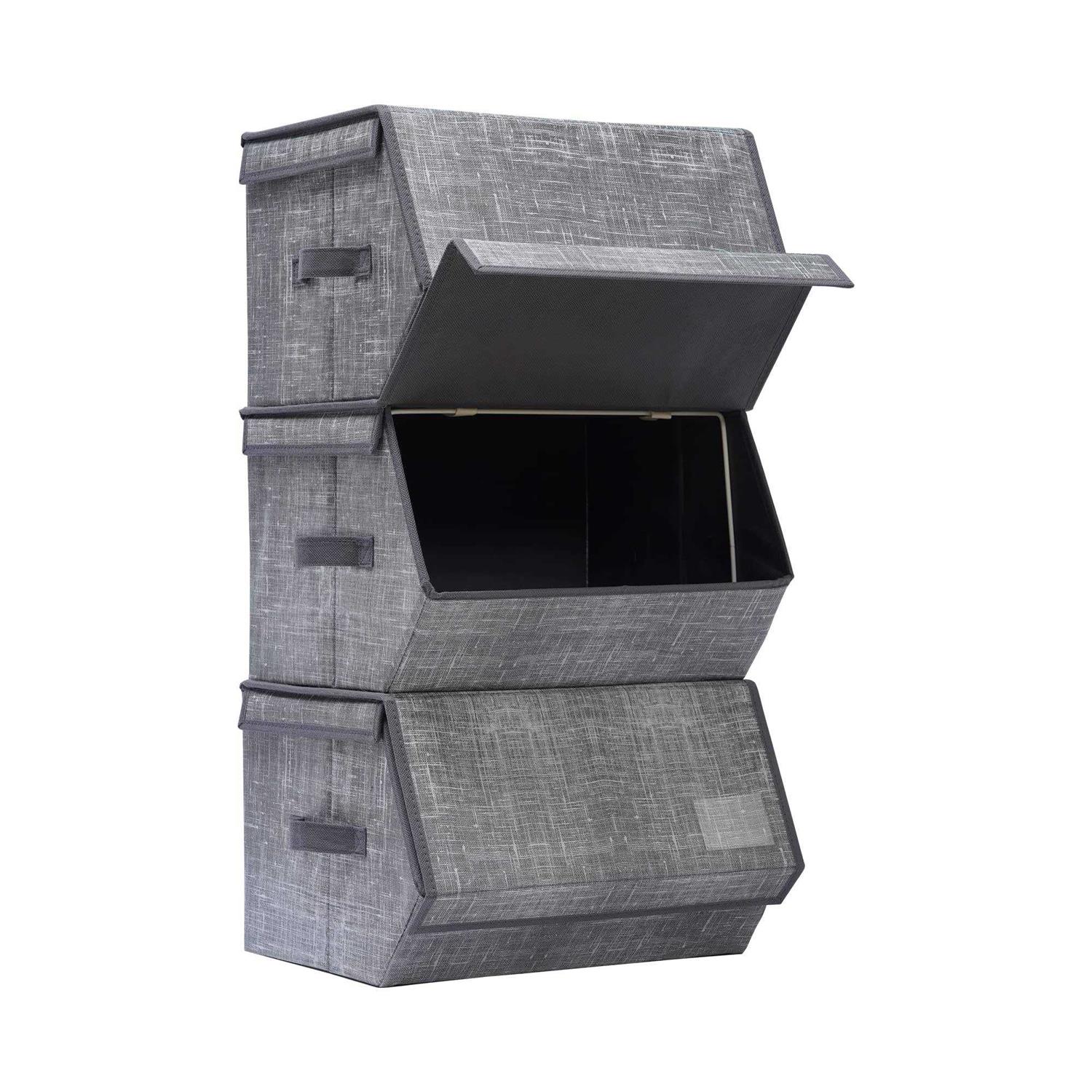 DOVAMY Stackable Storage Bins Set of 3 Storage Drawers for Clothes Cube Organizer with Lid