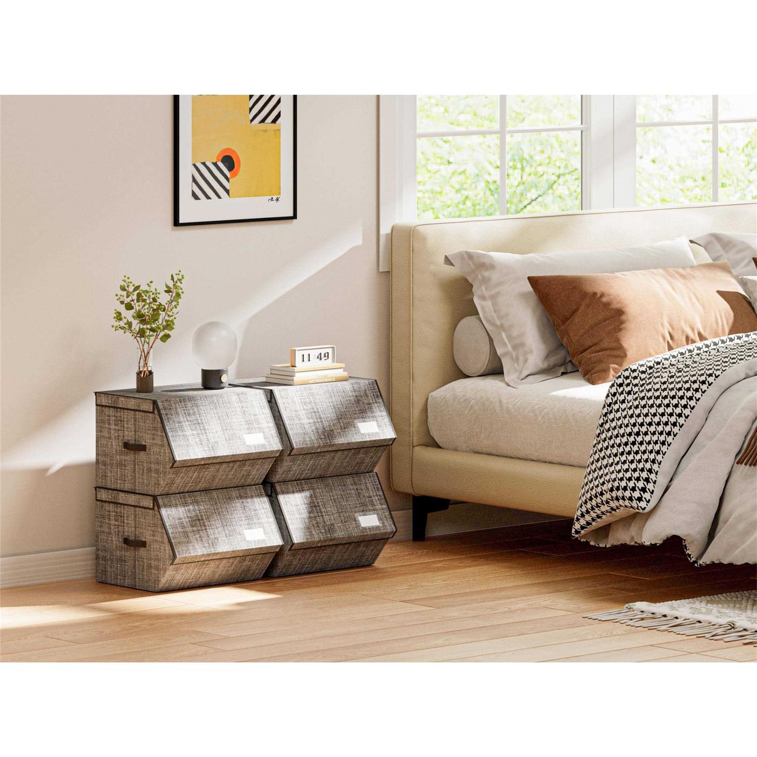 Fabric Durable Material – Our clothes storage drawers are made of wrinkle-resistant fabric and reinforced with heavy-duty cardboards, ensuring long-lasting use. Easy Access: The built-in magnet ensures that the cover can be adsorbed on the upper box, making it easier to access things from the fabric storage bins. Space-Saving Design: The 3 mm dia, Thick iron frame, cardboard structure and shackle fastener on the back make the containers can be stacked together to save space without deformation or overturning, thus ensuring the safety of valuables. Convenient to Use: With 2 durable handles, our stackable storage cubes are easy to carry and move around. They’re perfect for use on walk-in wardrobe shelves, bookshelves, or toy shelves. Versatile Use: Our open front storage bins can be used as storage drawers for clothes, stackable toy storage, or bed sheet organizers. They’re great for household organizing and can be used in multiple ways.