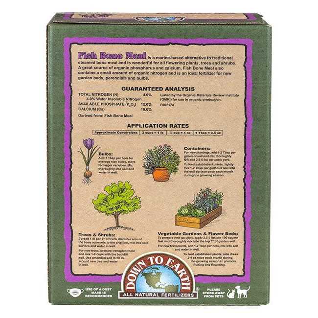 Fish Bone Meal is a marine-based alternative to traditional steamed bone meal and is wonderful for all flowering plants, trees and shrubs. A great source of phosphorus and calcium, Fish Bone Meal also contains a small amount of nitrogen and is an ideal fertilizer for new garden beds, perennials and bulbs. Fish Bone Meal is a marine-based alternative to traditional steamed bone meal and is wonderful for all flowering plants, trees and shrubs. A great source of phosphorus and calcium, Fish Bone Meal also contains a small amount of nitrogen and is an ideal fertilizer for new garden beds, perennials and bulbs.