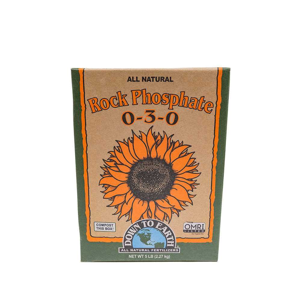 Down to Earths Rock Phosphate is a natural source of Phosphorus and Calcium. Down to Earth Rock Phosphate is a five-pound box of all-natural fertilizer with 0-3-0 formula and is listed by the Organic Materials Review Institute (OMRI) for use in organic production Rock Phosphate has 18% calcium and is essential for building soil phosphate levels for long term plant productivity and for preventing calcium deficient soils Should be applied to soils prior to planting and can be mixed with compost or manures for additional soil building benefits This premium powder grade is an excellent nutrient resource for all types of flowering plants including bulbs, fruits, shrubs, trees and vegetables Soft Rock Phosphate is an untreated, mined material with a natural source of Phosphorus and Calcium that is available more quickly than hard rock phosphate Down To Earth Rock Phosphate is essential for building soil phosphate levels for long-term plant productivity and for preventing calcium deficient soils. It should be applied to soils prior to planting and can be mixed with compost or manures for additional soil building benefits. This premium powder grade is an excellent nutrient resource for all types of flowering plants including bulbs, fruits, shrubs, trees and vegetables.