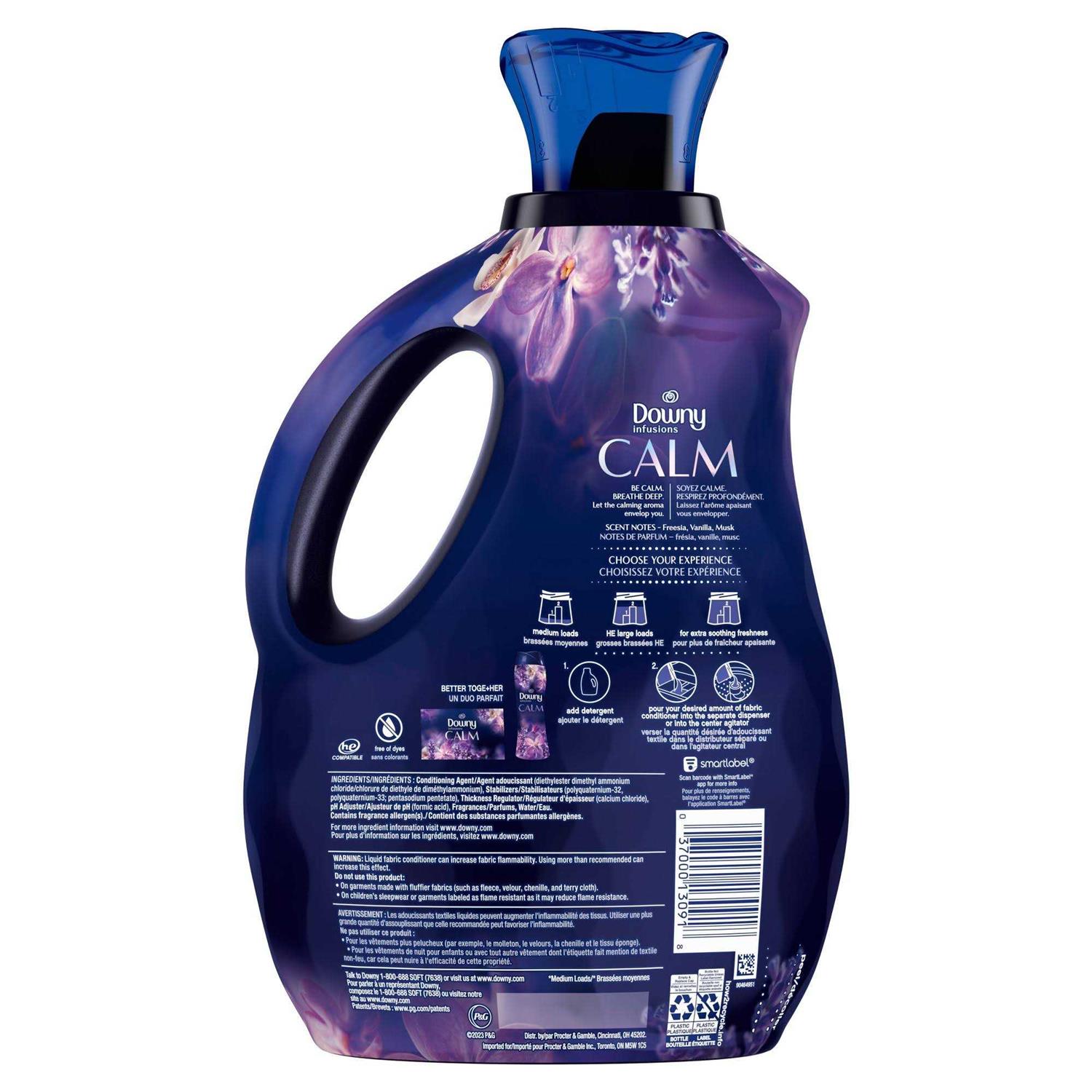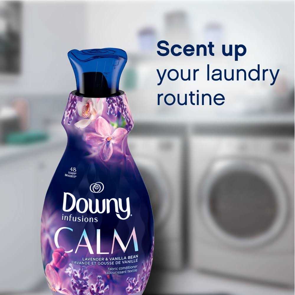 Discover the soothing scents of lavender and vanilla bean with Downy Infusions CALM Fabric Softener. Downy liquid fabric softener gives your laundry long-lasting fresh scents* and irresistible softness that smells as good as it feels. Just measure and pour for an incredibly calm aroma. Safe for all washing machines and a great companion to your detergent. Scent up your laundry routine with Downy Infusions Dryer sheets and In-Wash Scent Booster Beads for amazingly fresh loads. *Vs. leading liquid detergent from wash until wear.