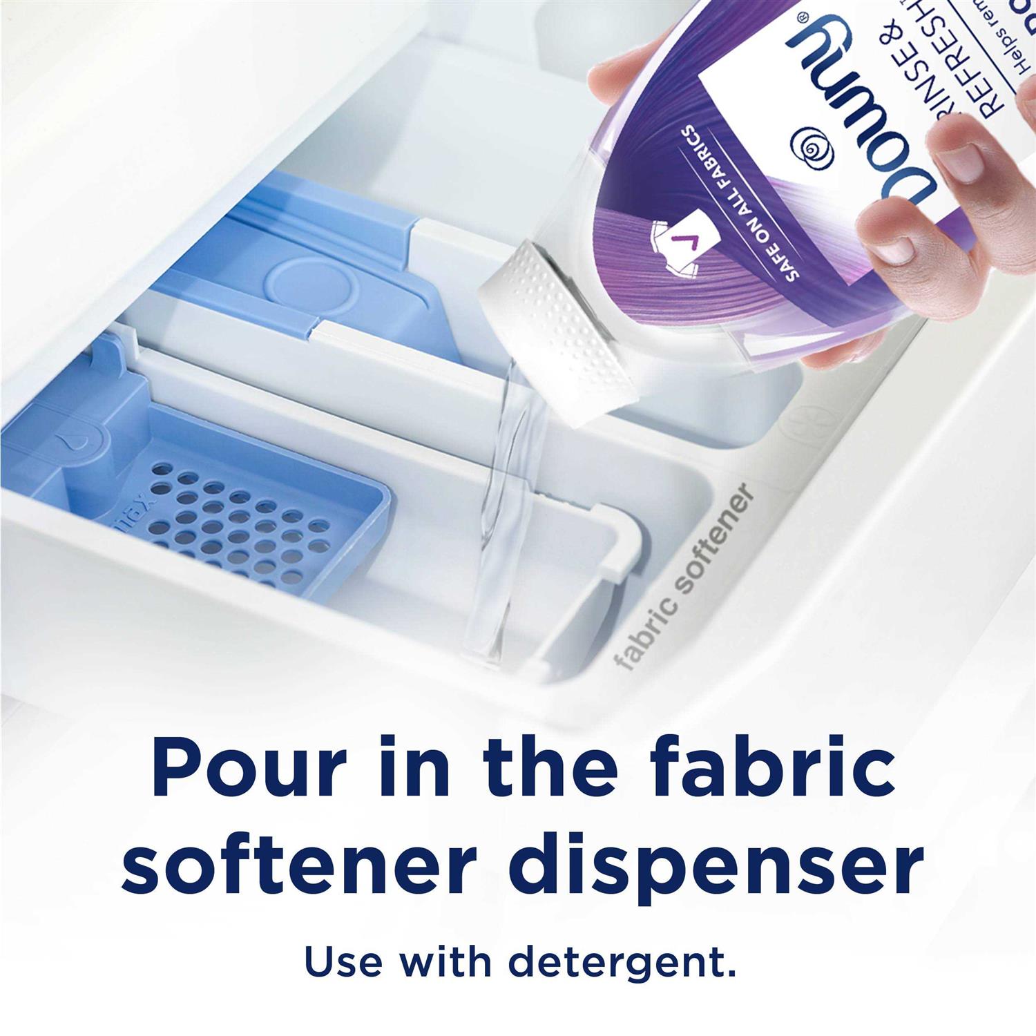 - Easy to use: just pour Downy rinse and refresh in your liquid fabric softener dispenser or directly in the rinse cycle