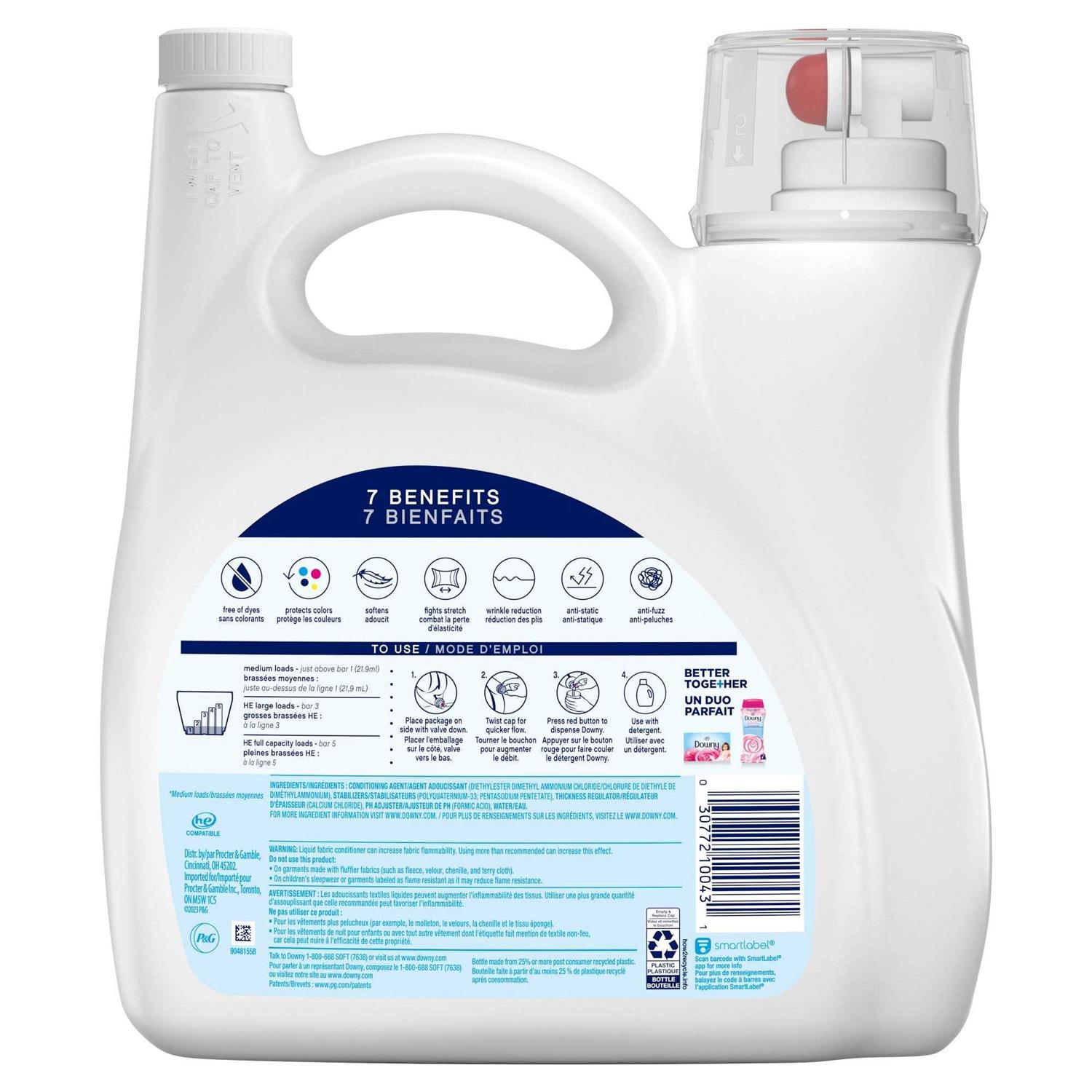 Add a gentler and scentless softness to your laundry with Downy Free & Gentle Fabric Softener. The hypoallergenic and dermatologist-tested formula is recognized by the National Eczema Association and National Psoriasis Foundation*. With no dyes and perfumes, Downy Fabric Softener was made for those with sensitive skin. Enjoy the Downy softness you know and love with fewer wrinkles and less static. Downy Liquid Fabric Softener is compatible with all top- and front-loading HE machines. It’s easy to use-after adding your favorite laundry detergent, pour Downy Liquid Fabric Softener into the fabric softener dispenser drawer or directly into the agitator and start the washer on your preferred cycle. Have clothes that feel softer and look newer** with Downy Free & Gentle Fabric Softener. *Based on a partnership with NPF **Vs. detergent alone. Adds softness while fighting wrinkles, static, fuzz, fading, and stretching Hypoallergenic and dermatologist-tested Gentle on sensitive skin Free of dyes and perfumes Just measure and pour into your washer’s fabric softener dispenser drawer or directly into the agitator