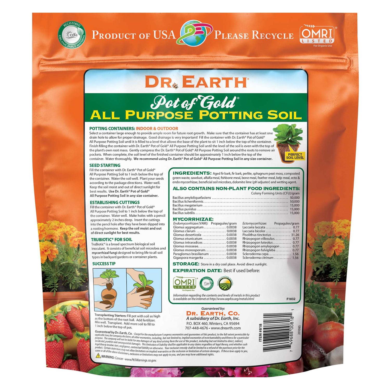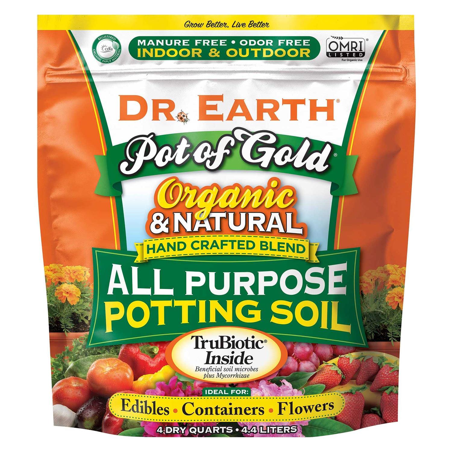 Dr. Earth Potting Soil, All Purpose, Pot of Gold, Premium – 4 dry quarts (4.4 liters)