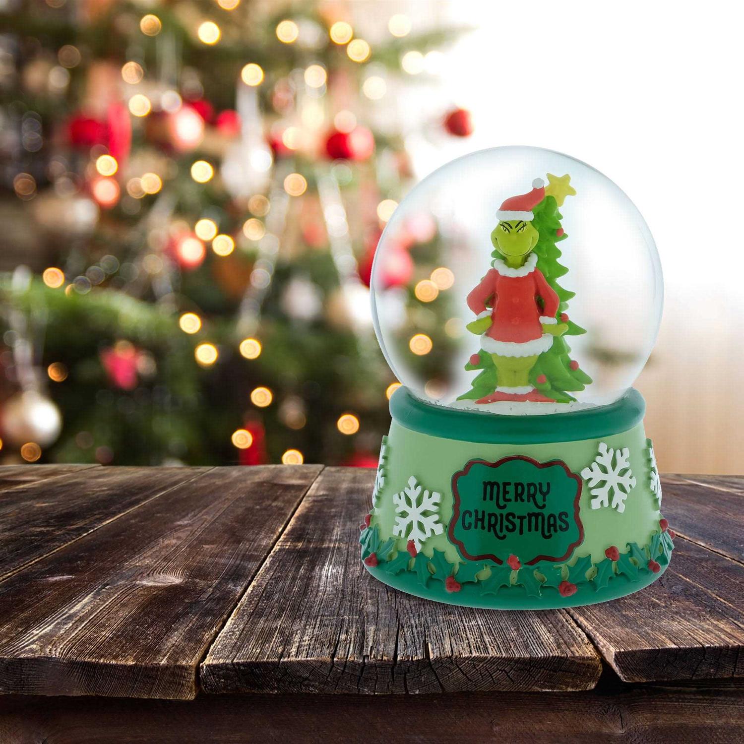 Merry Grinchmas! Any fan of the Grinch will be excited to make this beautifully decorated snow globe part of their holiday decor. Features a classic Grinch scene with a festive resin base. Perfect for any room, everyone will smile when they see this exquisite snow globe on Christmas morning. Surprise friends and family with a cheerful rendition of Jingle Bells from the wind up music box. The 100MM green Grinch Snow Globe is perfect for decorating and gift giving.