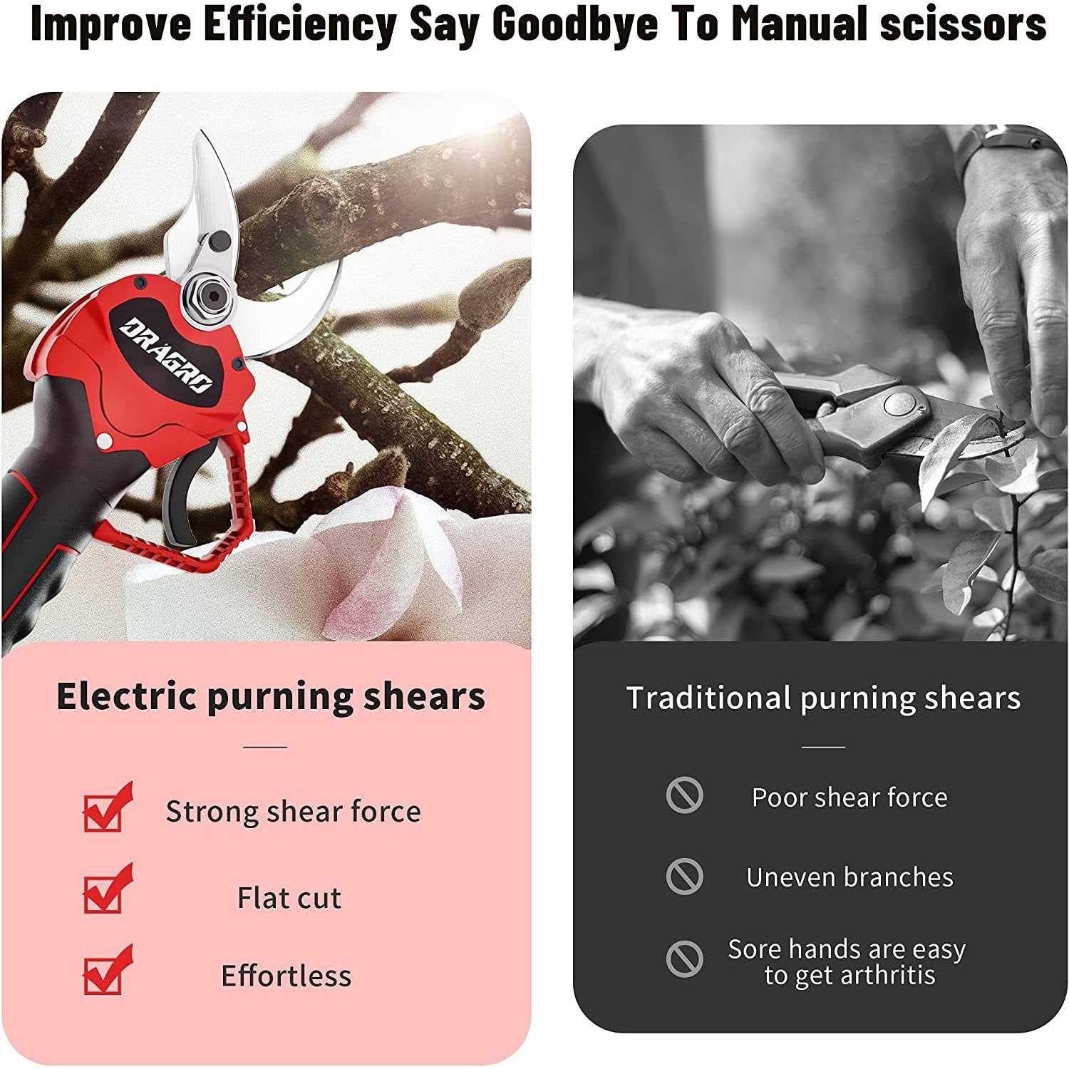 Dragro Electric Pruning Shears Professional Cordless Electric Pruning Battery Powered