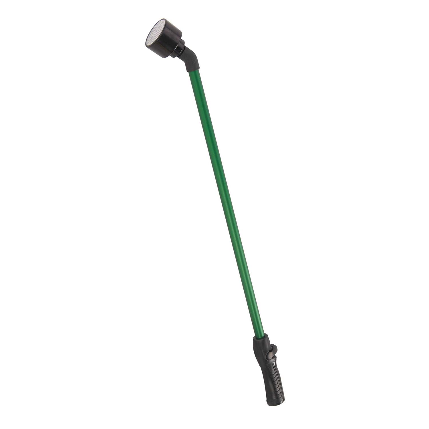 One Touch water wand incorporates a 1-touch lever activated valve with an ergonomic insulated grip. Move thumb to turn water on or off. Saves water while watering from one plant to the next. Made with anodized aluminum tube making it lightweight. Features rubber over mold at the bend for additional protection. Metal thumb activated valve for durability with rubber over mold for comfort.