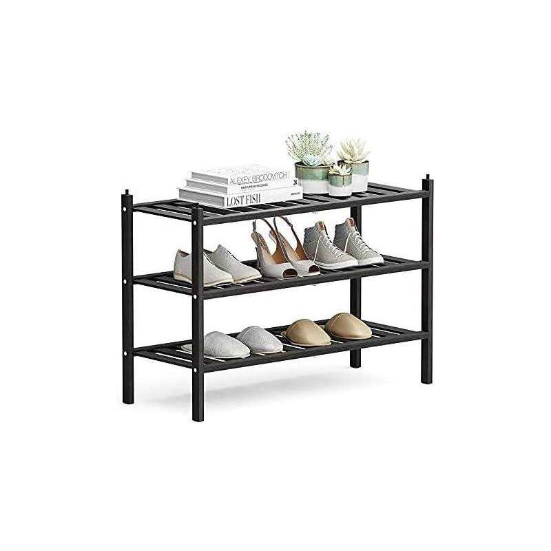 Dranixly Shoe Rack, 3-Tier Bamboo Stackable Shoe Shelf Storage Organizer, Shoe S