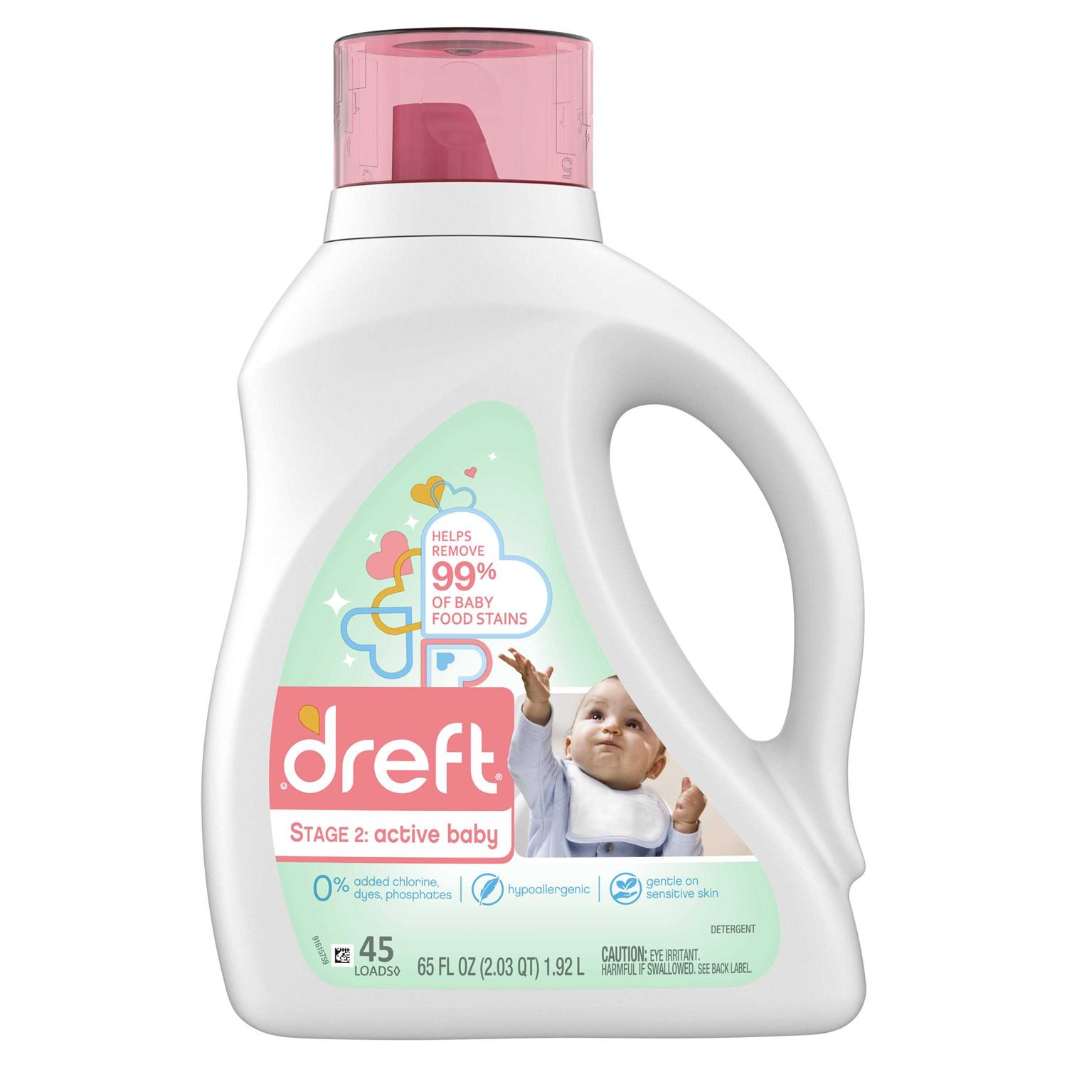 Dreft Stage 2: Active Baby Liquid Laundry Detergent, 45 Loads 65 fl oz
