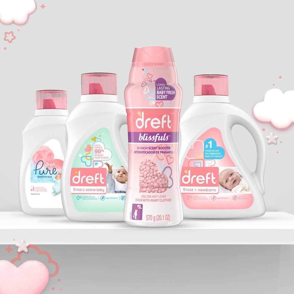 Liquid Detergent by Dreft. Details:Dreft Blissfuls in-wash scent booster gives you more of the baby fresh scent you love. Use Dreft Blissfuls in any load of laundry for lasting freshness that you can enjoy with every wiggle and tickle of baby’s fabrics. Your child is only a baby for one year, but Dreft Blissfuls allows you to bring back that amazing baby scent (and all those memories) whenever you want.