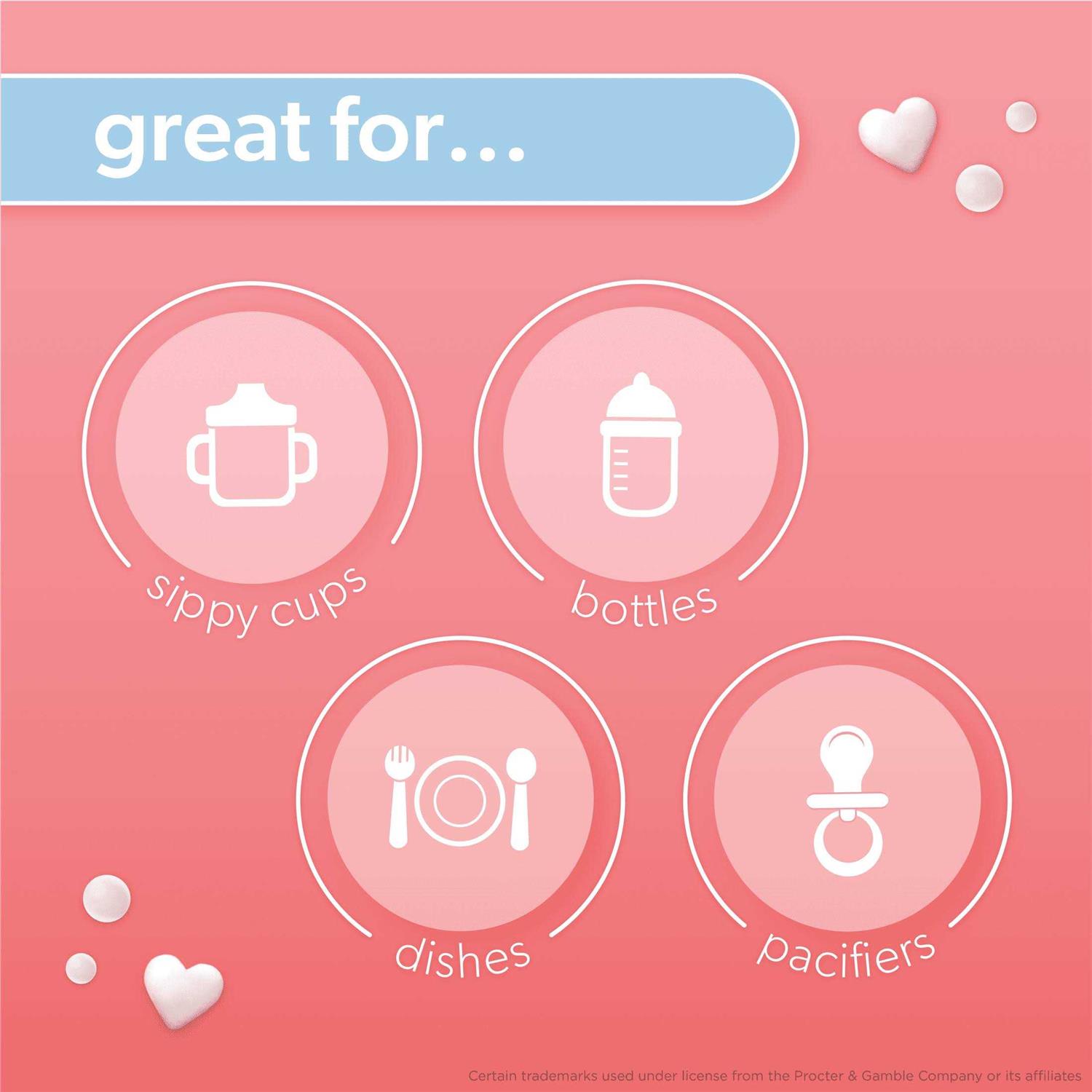 • BABY SOAP: Cleans baby bottles, sippy cups, pacifiers, breast pump components, utensils, silicone bibs, whole family’s dishes and more!