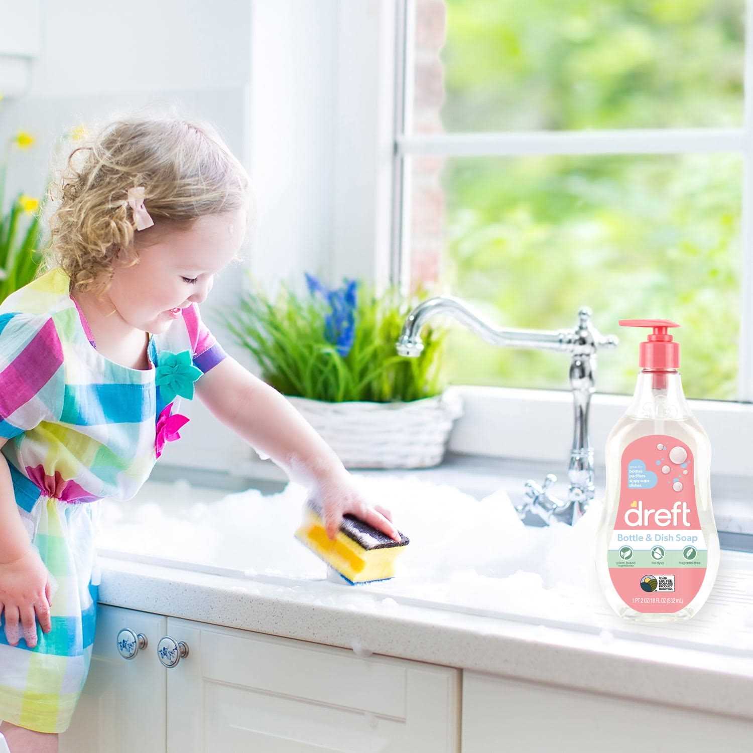 Dreft Bottle & Dish Soap is specially formulated to gently clean bottles, sippy cups, pacifiers and dishes! This formula is made from 90% Plant-Based ingredients and is a USDA Certified Biobased Product! The Dreft Bottle & Dish Soap is a dermatologist test and fragrance & dye free formula that cuts through milk film on bottles and breast pump components.
