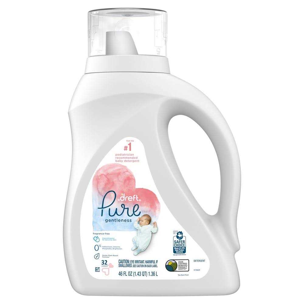 Dreft Pure Gentleness Liquid Baby Detergent, Fragrance Free, 32 Loads – 46 fl oz
