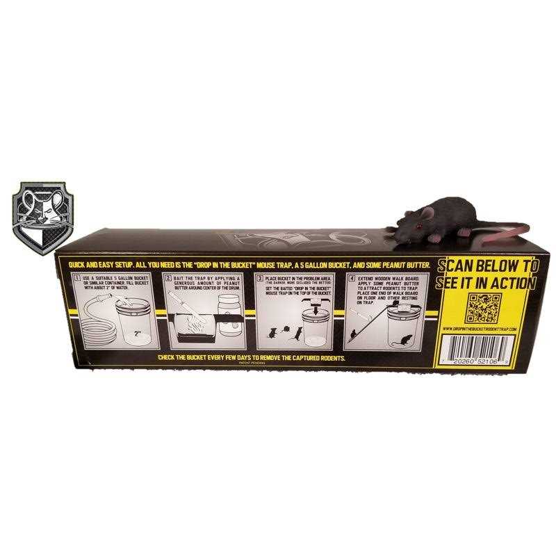 The Drop in the Bucket Mouse Trap is a revolutionary new mousetrap that holds a rotating drum that is baited with peanut butter or bait of your choice. You then place the baited Mousetrap on top of any 5 gallon bucket. Just add water to the bucket and place the mousetrap where the rodent activity is and let it do it’s job! The Drop In The Bucket Mouse Trap is a multi-catch Mousetrap and is always set and ready to go for the next catch! Proven 100% effective at eliminating your rodent infestation when setup and used properly!