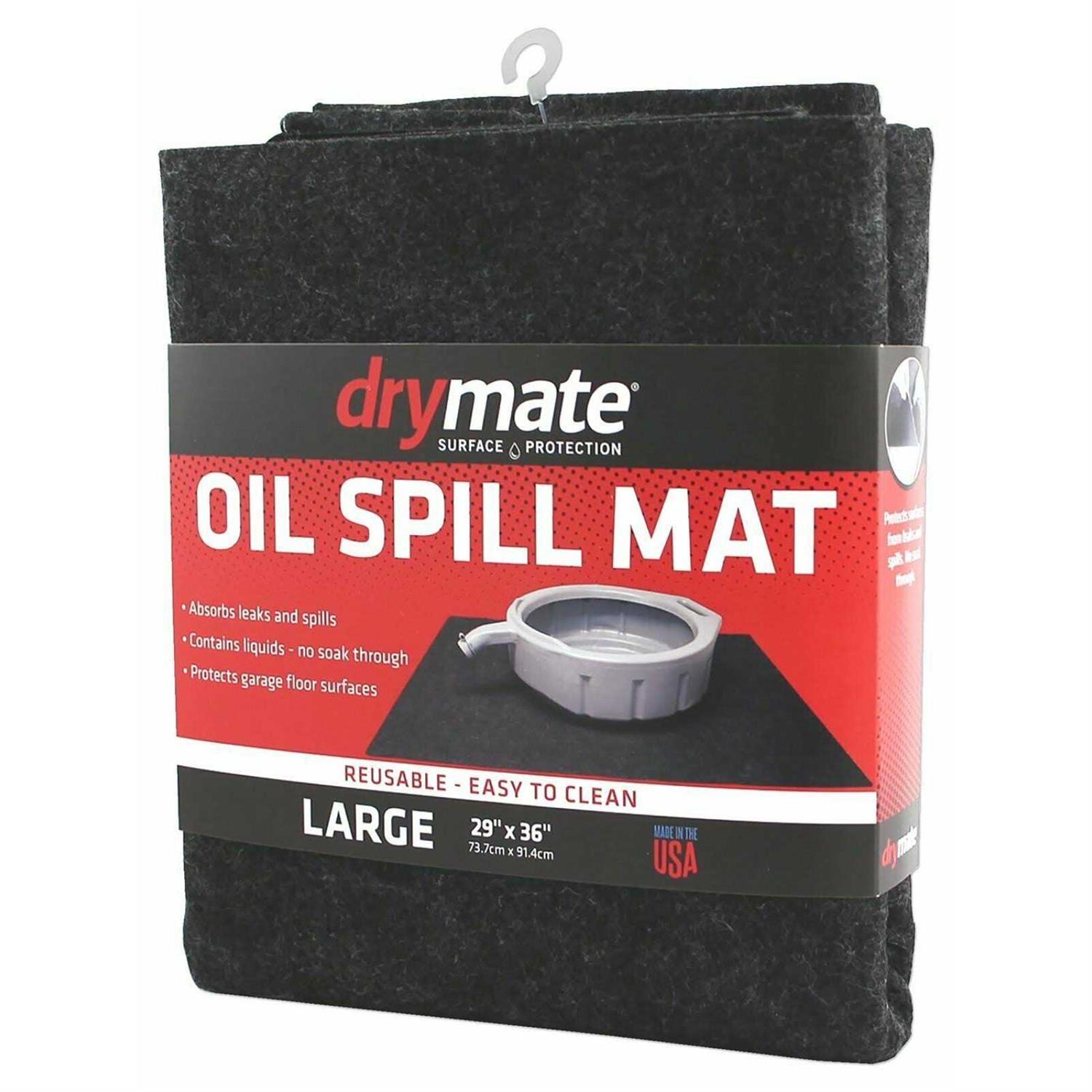 The Drymate Oil Spill Mat protects your garage floor from leaks and spills. The absorbent fabric contains leaks and the waterproof backing prevents moisture and oil from seeping through. This mat is reusable, durable, easy to clean and environmentally friendly. Drymate products are proudly made in the USA. For best results place oil mat underneath the car to protect garage surface. Be proactive, not reactive.