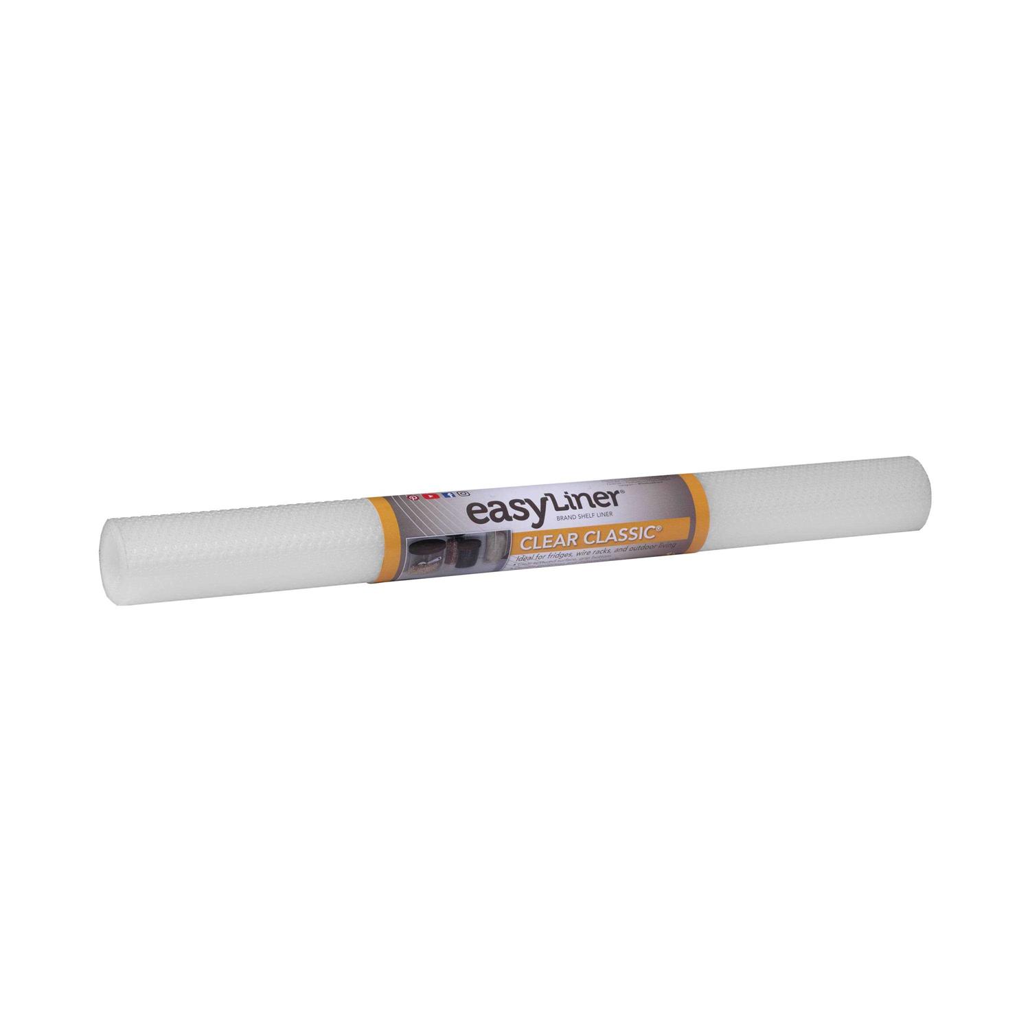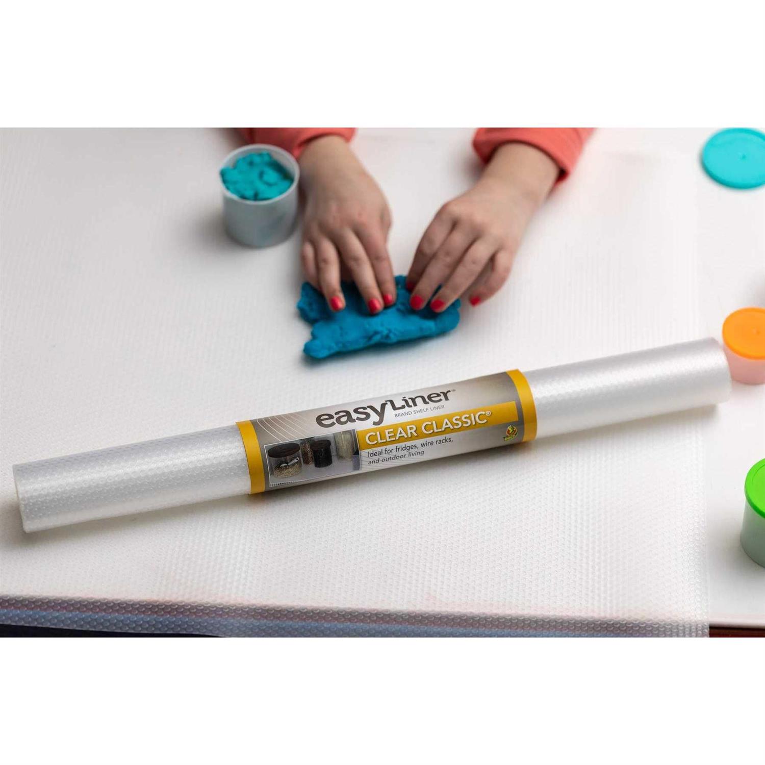 Non-adhesive Liner is easy to cut, install, replace and reposition without hassle Non-slip bottom prevents Liner and items from sliding Food safe shelf Liner Made from PVC-free material Ideal for fridges, wire racks and outdoor living Clear roll measures 20 inches x 4 feet You do a lot to organize, decorate and protect your home from life’s unwanted messes. Duck Brand clear classic easy liner shelf liner does all three in a simple and affordable way. Durable and water-resistant, clear classic easy liner shelf liner provides protection for both indoor and outdoor applications around the home. Use for wire shelving, inside drawers and even on top of bars – its clear, textured surface is designed to keep surfaces dry while keeping the liner and your items in place. The translucent design is also perfect for refrigerator shelves by letting light pass through to the surface below. Plus, the easy wipe surface makes cleanup a breeze. The Duck Brand has been delighting consumers with quality products for over 20 years and continues to innovate and offer solutions for the household.