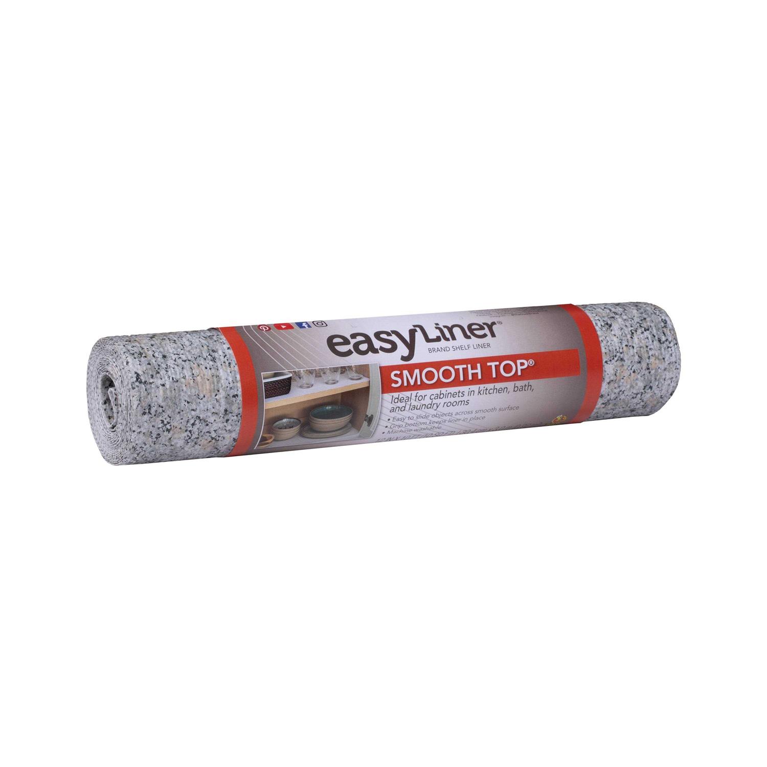 Duck Brand Smooth Top EasyLiner Brand Shelf Liner provides an easy to clean surface for cabinets in your kitchen, bath and laundry room.