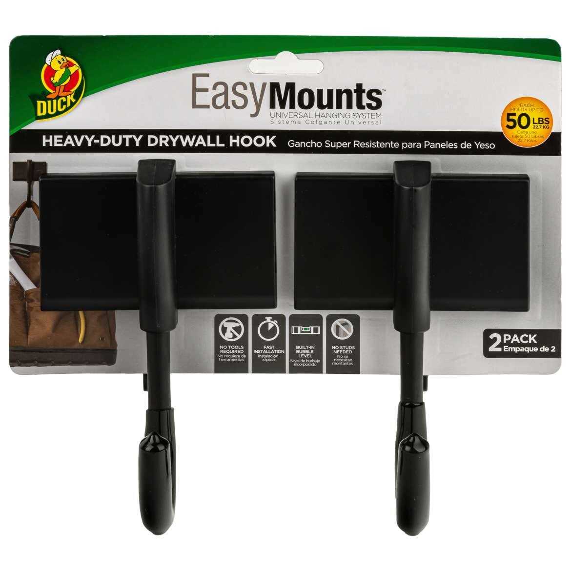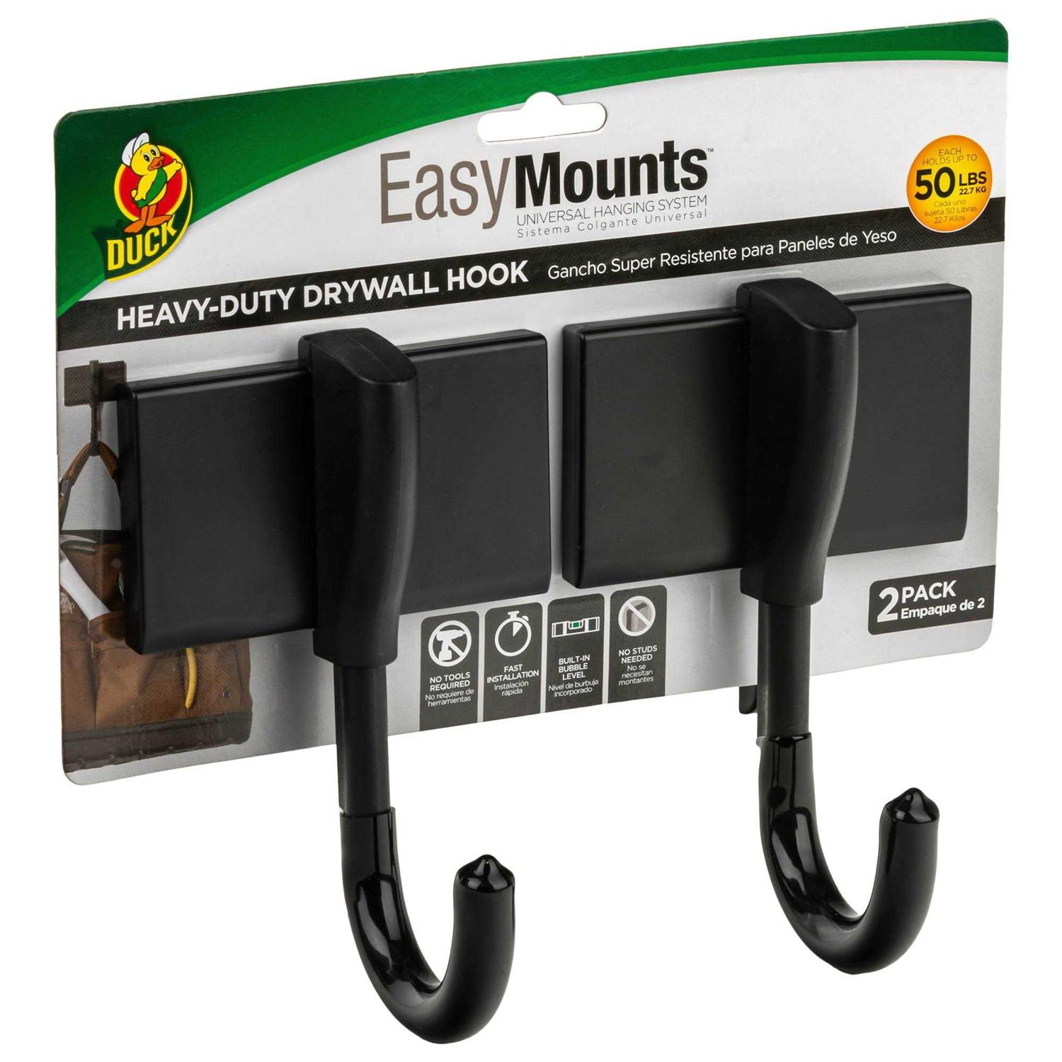 From leaf blowers and string trimmers, to golf bags and camp chairs, Duck Brand EasyMounts Heavy-Duty Drywall Hooks are perfect for hanging a variety of tools and garage equipment during your next home organization project. Each hook securely holds up to 50 lb. of weight, and installs in drywall in minutes so you can quickly get organizing just stick, pin & slide. The universal hanging system allows you to easily switch to another EasyMounts Heavy-Duty solution in seconds, without moving the base. No sweat, no damage, just pure flexibility. Plus, the entire heavy-duty system offers permanent hold guaranteed to withstand the test of time in a variety of climates, thanks to the adhesive and pin installation technology. Tool-free and easy to install, EasyMounts lets you to ditch the toolbox and get your mind out of the clutter.