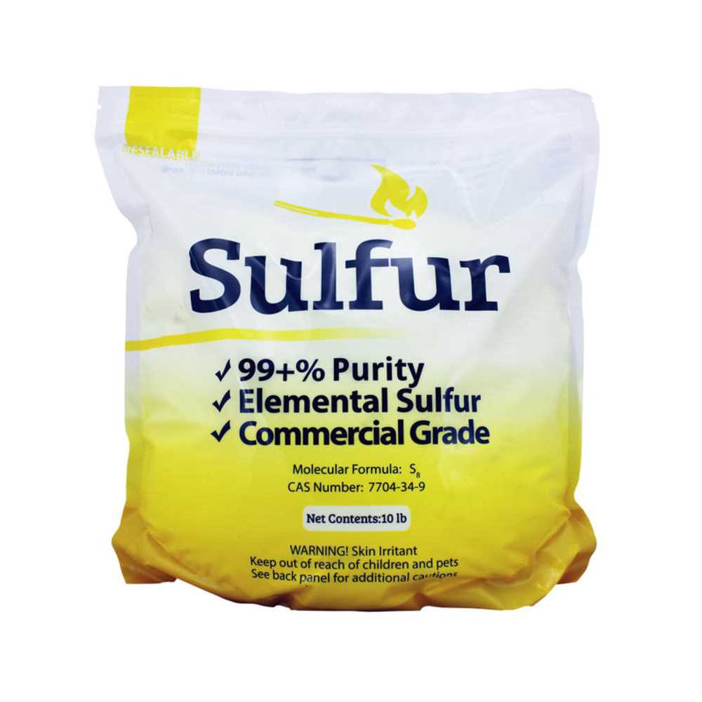 Ground Yellow Sulfur Powder by Duda Energy 99.5+% Pure Specifications Chemical Formula: S8 CAS# 7704-34-9 Synonyms: Brimstone, Sulphur Sulfur is recovered during gas manufacturing as a molten sulfur. It is then cooled on a stainless steel belt and forms into a flake form. The flakes are then taken off the belt and ground into powder. Some Uses: Fertilizers / soil treatment (commonly used in large farms) Adjust the pH of soil, which is essential for certain fruits such as blueberries Excellent as an additive to a lawn/garden Sulfur is insoluable in water. Only mixtures in water can be made. Sulfur powder has a low flammability rating. It can be compared to wood in terms of flammability. Note that pure solid sulfur powder does not burn easily because it requires a lot of oxygen to achieve the necessary ignition. We do not recommend burning sulfur powder due to the release of sulfur dioxide, which is a poisonous gas. Specialized applications Sulfur is used as a light-generating medium in the rare lighting fixtures known as sulfur lamps.