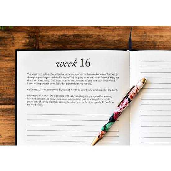 This pregnancy prayer journal is a great baby keepsake for any mom. Each week of pregnancy has a page that describes your baby’s development and gives a prompt (with scripture) to guide you in praying for your baby as they grow. This journal also includes many other milestone pages to help you always remember the little and big moments that happened during this special season.