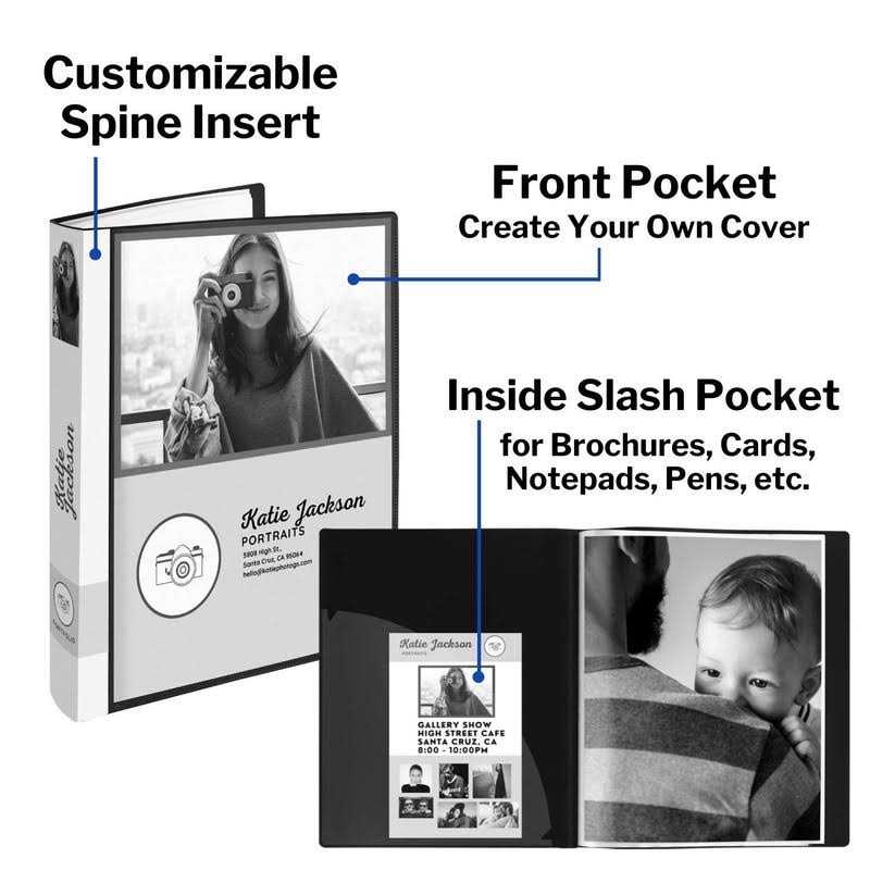 Folder with Clear Sheet Protectors: Flexible high quality polypropylene cover is water, spill and dirt resistant, and portable, Provides long term storage protection for your documents or artwork. Includes: 1 Black plastic binder folder with 60 bound (non-refillable) top-loading plastic binder sleeves, Displays 120 viewable pages of 8.5×11″ Letter Size or smaller. Customizable Portfolio Presentation Book: Reversible spine insert and front cover insert lets you label and identify your projects, certificates, contracts, sheet music, scrapbook, menu, etc. Non-Cling, Archival Quality Plastic Binder Sleeves: Lightweight polypropylene is non-glare, acid-free, no-copy transfer, no ink lift-off. Preserves your valued papers, photography, art collection. Size and Features: Folder measures 9.75(W) x 11.5(L) x 1.4″(H). Front cover has inside pocket for loose paper. Bound presentation book lies flat when open. Each pocket is 8.8×11.1″, fits 10 sheets.